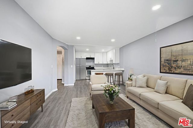 Step into this beautifully remodeled 1 bedroom, 1 bathroom Warner Parc condo in the heart of the West Valley; an incredible opportunity at this price point. Just minutes to The Village, Westfield Mall, the new Los Angeles Rams Training Center, and the Orange Line, you're surrounded by everyday conveniences, dining, shopping, major transportation hubs, and entertainment. This light-filled, east-facing second-floor home (with only one shared wall) features updated hard surface flooring, recessed lighting, and a sleek renovated kitchen with quartz countertops, modern shaker cabinetry with soft-touch hardware, and an appliance package that includes an electric stove & dishwasher. The inviting living room flows to a cozy private balcony with storage closet, while the spacious bedroom offers mirrored closets and a refreshed full bath. With two tandem parking spaces, elevator access, community laundry, and resort-style pool and spa, this low-maintenance condo delivers style, comfort, and unbeatable value in a prime location...perfect for first-time buyers, downsizers, or anyone seeking a convenient home base.