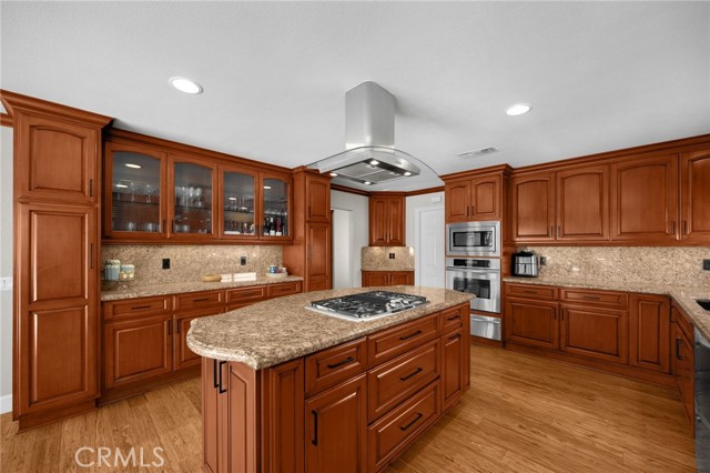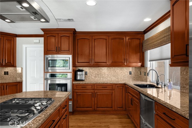 BEAUTIFUL, SINGLE-STORY home in a highly sought-after neighborhood in Yorba Linda. This home features a bright and open floor plan with 3 bedrooms, and 2 bathrooms with 1,500 square feet of spacious living space. Beautiful maintained front yard includes artificial turf, spacious courtyard area with wood burning fire pit, custom lighting and security camera system. You are welcomed at the entry into the spacious living room which features a vaulted ceiling, a beautiful fireplace, recessed lighting and windows that bring in plenty of natural lighting. The beautifully designed kitchen features beautiful cabinetry which provides ample storage, stainless steel appliances including a gas cooktop and a built-in subzero refrigerator, kitchen island and breakfast nook that has beautiful views of the backyard. The Primary Bedroom Suite features a LARGE bedroom area with double closets, and beautiful ensuite bathroom. Down the hall are 2 generously sized bedrooms with plenty of closet space and a beautiful hall bathroom. Third bedroom is currently being used as an office. This private backyard is SPECTACULAR AND IS MADE FOR ENTERTAINING!!! This stunning backyard features a Cabana with FULL SIZED Kitchen and lounge area. The outdoor kitchen includes TWO high end Wolf ranges with overhead range hood with fan and lighting, 2 drawer refrigerator, ice maker, sink, multiple drawers, cabinetry for storage and counter bar seating. The lounge area includes wood plank ceiling, ceiling fans, recessed lighting, and Automatic mounted TV. This private backyard also features a SPACIOUS concrete patio area with gas fire pit, dog run, RV Parking, beautiful mature landscaping and on the lower level a 20 x 12 Shed that includes a farm sink, shelving and A/C. Additional features of the property include a spacious 2 car garage with shelving, NEW water softener, Smart Home System, Alarm System, update ducting with added vents in kitchen and living room, plumbing has been partially re-piped with copper, and so much more! This home is in the Award-Winning Placentia-Yorba Linda School District AND WALKING DISTANCE to Yorba Linda Middle School and Veterans Sport Park. Located half a block from Yorba Linda bike/walking trail, close to the Nixon Library, Yorba Linda Public Library, Yorba Linda Town Center, restaurants, shopping and entertainment. Come view this beautiful house and make it yours today!