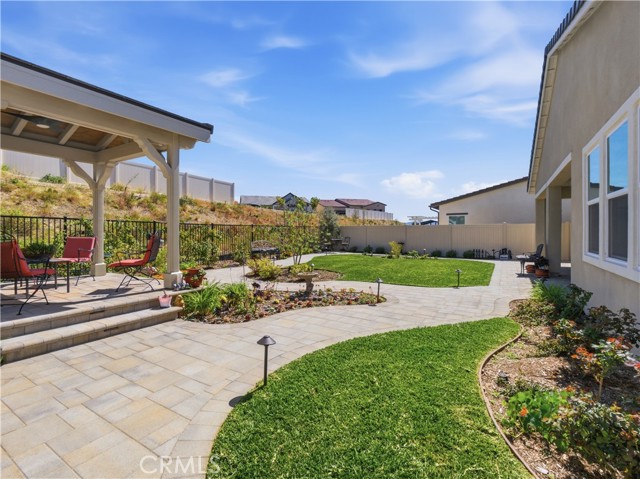 Welcome to this Gated Single Story beautifully upgraded, practically brand new and move-in ready home located in a highly sought-after 55+ resort-style community of Tesoro, where comfort, style, and lifestyle come together seamlessly. This thoughtfully designed 2 Bedroom,3 bathroom, plus bonus room residence offers owned solar, a light-filled open floor plan with high ceilings, wide-plank flooring, and a modern neutral palette that creates a bright and inviting atmosphere throughout. The chef’s kitchen is the heart of the home, featuring an oversized center island with seating, quartz countertops, stainless steel appliances, double ovens, a gas cooktop with designer hood, abundant cabinetry, and a spacious walk-in pantry. The kitchen flows effortlessly into the expansive living and dining areas—perfect for everyday living and entertaining. The spacious primary suite offers a peaceful retreat with plenty of natural light, a sitting area that would be perfect for a home office and or study, a spa-inspired ensuite bathroom with dual vanities, a large walk-in shower with bench, and an oversized walk-in closet. The secondary bedroom is generously sized with an ensuite bathroom and ideal for guests, office space, or hobbies. Additional highlights include plantation shutters, recessed lighting, a dedicated laundry room with built-in cabinetry, and ample storage and counter space. Step outside to a beautifully designed private backyard featuring a covered patio, gazebo, lush landscaping, and plenty of space to relax or entertain. . Residents enjoy an array of resort-style amenities, including a modern recreation center, fitness room, pool, pickleball courts, putting greens, and BBQ areas- all within a secure, gated community. Conveniently located close to shopping, dining, and more. If you're looking for a model spec home, this is the one for you.