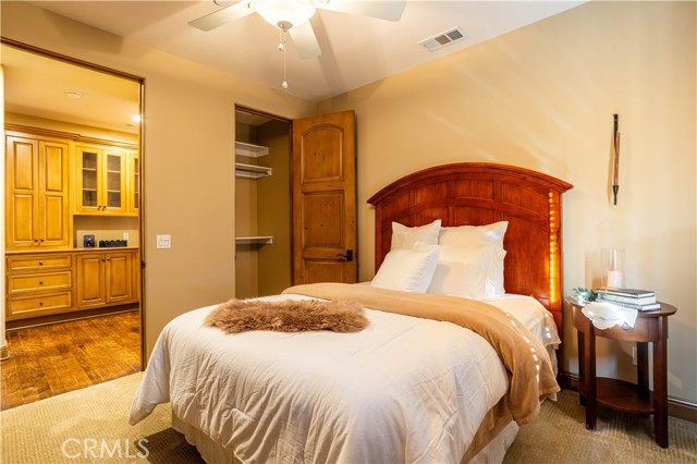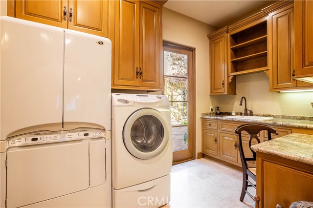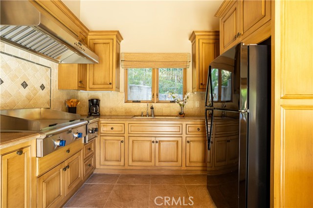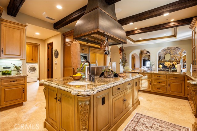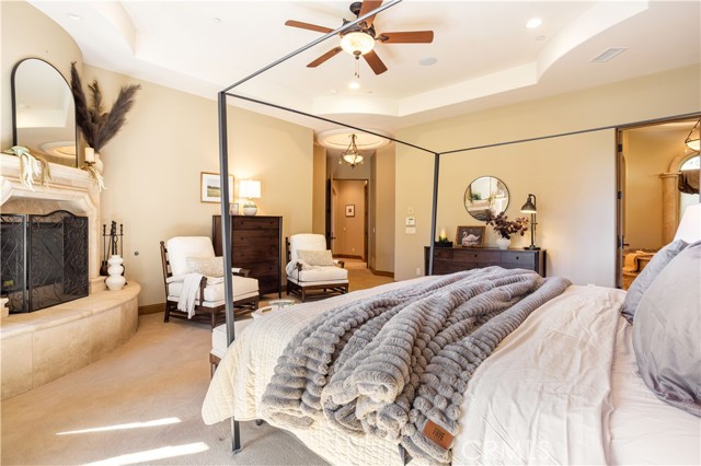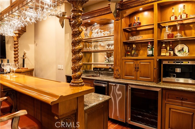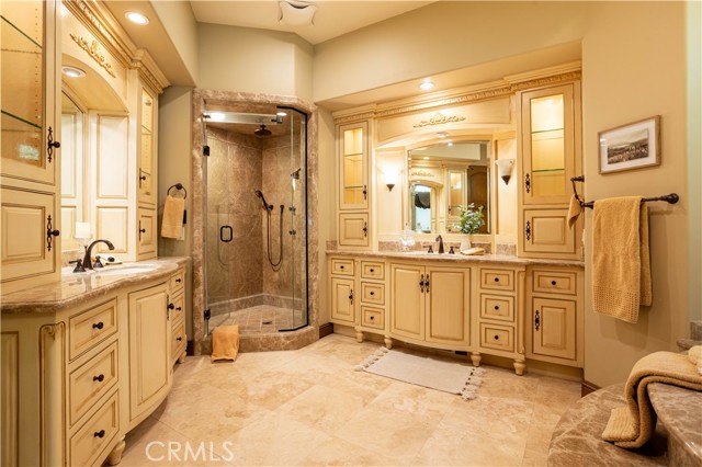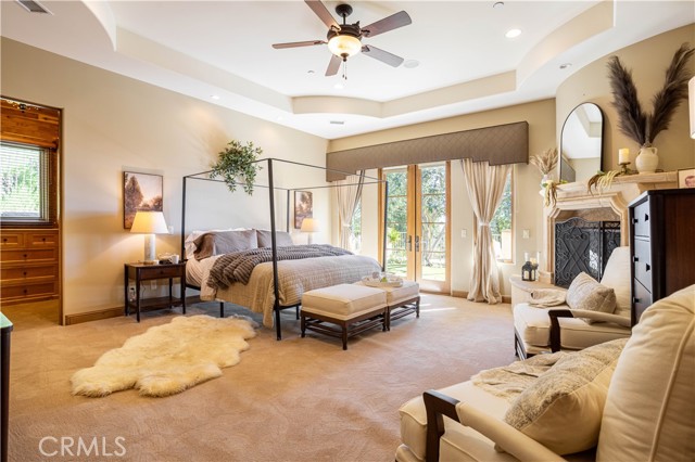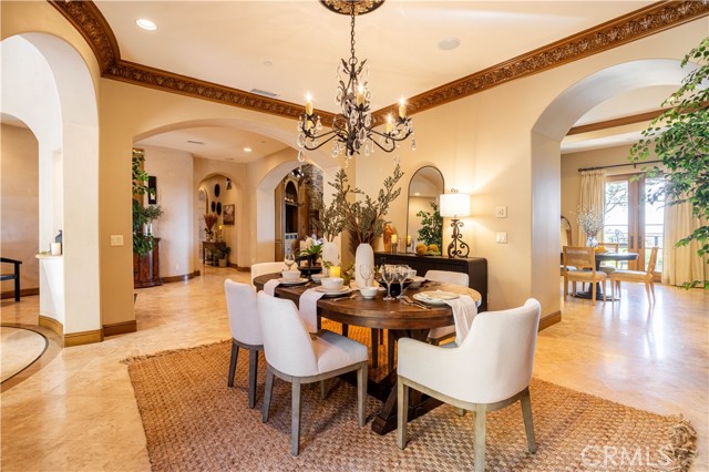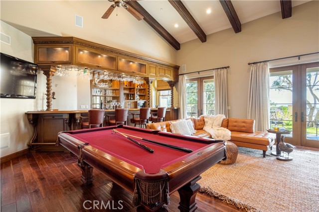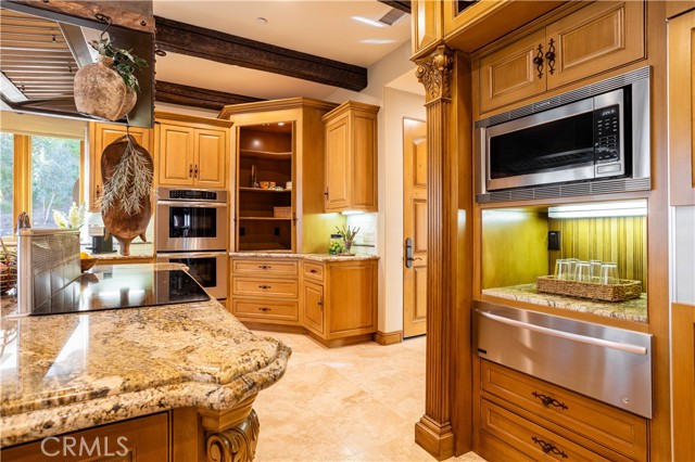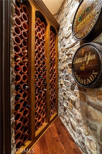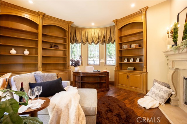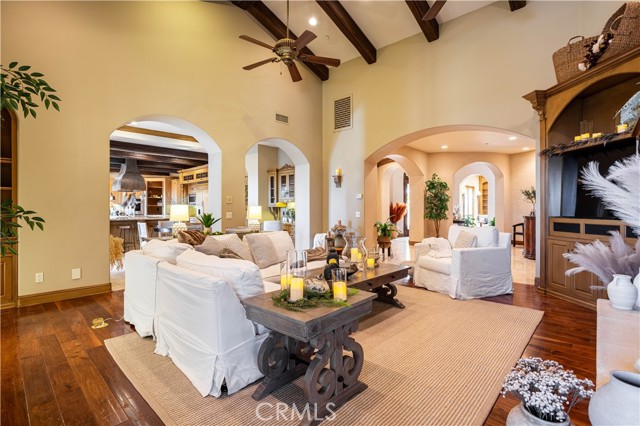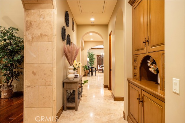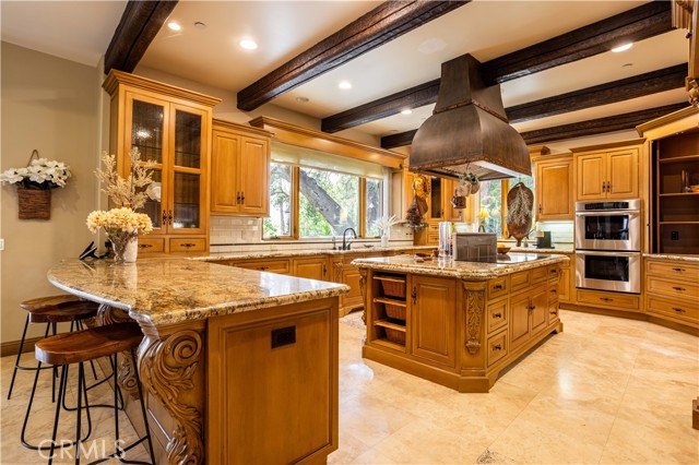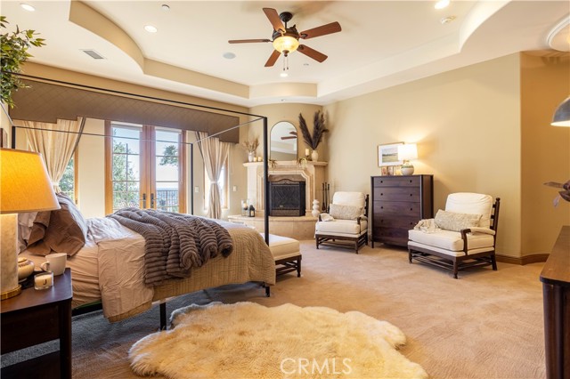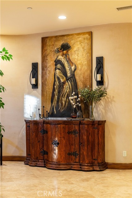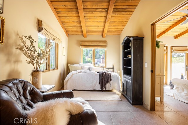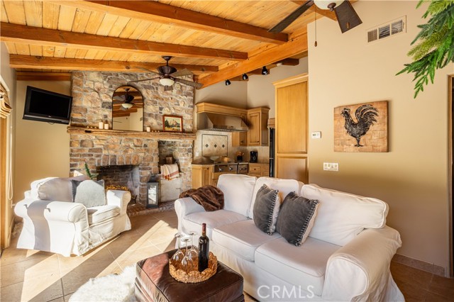 Perched majestically in the foothills of Monrovia, this one-of-a-kind Italian villa-inspired estate offers an unparalleled lifestyle defined by privacy, luxury, and sweeping city views. Sprawling across 13.12 acres, the property features a masterful 4,968 sq. ft. single-level main residence where architectural elegance meets seamless indoor-outdoor flow. The journey begins in a tranquil courtyard with a soothing fountain, leading through a grand foyer into a floorplan designed for sophisticated entertaining. The formal living room, marked by soaring vaulted ceilings and a massive stone double-sided fireplace, transitions into an expansive family room. This space is a connoisseur's dream, equipped with a full wet bar, wine cellar, wine fridge, and built-in cappuccino machine. Both rooms feature French doors opening to a vast covered patio framing breathtaking vistas. At the heart of the home lies a chef’s kitchen, meticulously appointed with professional-grade appliances, double ovens, a warming drawer, and a large center island with a new cooktop. Granite countertops, custom cabinetry, and a walk-in pantry provide abundant storage, while the breakfast area and built-in desk offer everyday functionality. The kitchen flows gracefully into the formal dining room, perfect for large-scale gatherings. The primary suite is tucked privately at the rear of the home, featuring a fireplace, cedar-lined walk-in closet, and a spa-like bathroom with dual vanities, a soaking tub, and a multi-head steam shower. Three additional bedrooms, two full bathrooms, and two powder rooms ensure comfort, while a dedicated office with built-in bookcases provides a quiet workspace in a private wing. Beyond the main residence, a 2,164 sq. ft. vehicle storage garage with an integrated workshop is topped by a charming 895 sq. ft. upper-level apartment. This guest unit includes a balcony, full kitchen, and two bedrooms, with infrastructure for an elevator. The lower tier is an entertainer's paradise, featuring a sparkling pool, outdoor fireplace, and a 520 sq. ft. pool house with its own kitchen, living area, bedroom, and bath. This estate is rounded out by a solar system, multi-zone HVAC, and a whole-house vacuum, offering a rare blend of Mediterranean inspiration and modern efficiency.