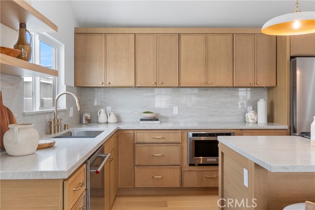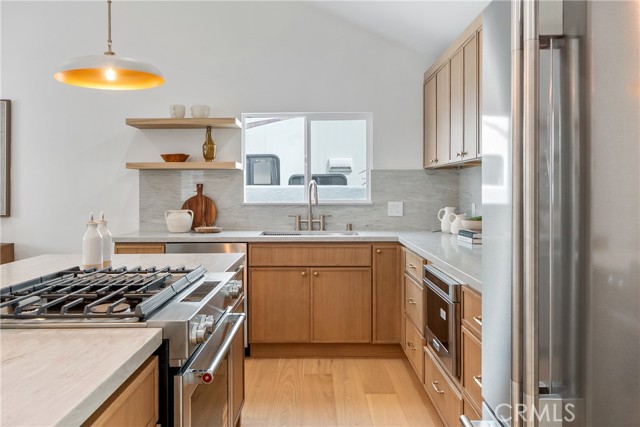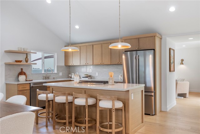 Welcome to 5308 Clearsite Street, a beautifully remodeled 3-bedroom, 2-bath home in South Torrance’s desirable Seaside neighborhood. Offering 1,554 square feet of living space on a 5,150 square foot lot with a 2-car attached garage, this fully permitted renovation combines quality upgrades, thoughtful design, and a prime coastal-close location. Located just two homes from the well-known Candy Cane Lane area, this prime Seaside location offers cool ocean breezes and close proximity to award-winning schools, golf, Seaside Heroes Park, and Tabb Baseball Field. The home also enjoys backyard views across the Seaside neighborhood extending toward Palos Verdes, along with convenient access to Torrance Beach, Riviera Village, and the best of the South Bay lifestyle. The interior features a reconfigured kitchen, dining area, and upstairs primary ensuite, creating a bright, open layout with vaulted ceilings. Finishes include oak engineered hardwood flooring, fresh interior and exterior paint, recessed lighting, new interior shaker panel doors, and Delta plumbing fixtures throughout. Major system upgrades include a new HVAC system, Nest thermostat, updated electrical panel and wiring, upgraded PEX plumbing, and dual-pane vinyl windows. The kitchen is equipped with slim oak cabinetry, Dolomiti quartz countertops with a full-height backsplash, a large center island, and a KitchenAid professional range with downdraft system, along with a built-in microwave drawer, integrated dishwasher, refrigerator, Hinkley pendant lighting, and Top Knobs Chareau Collection hardware. The primary suite offers a walk-in closet and a remodeled ensuite with slim oak vanities, Calacatta quartz countertops, a walk-in wet room with soaking tub and rainfall shower, Celine tile collection by Bedrosians, Blue Run tile flooring, and an Oriental White marble shower pan. Exterior improvements include new landscaping with irrigation, a concrete driveway, epoxy-finished garage, new garage door with motor, vinyl side access doors, a mahogany front door, and a pergola-covered outdoor area. This is a turnkey opportunity in one of South Torrance’s most sought-after neighborhoods, offering both quality upgrades and an exceptional location.