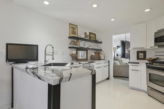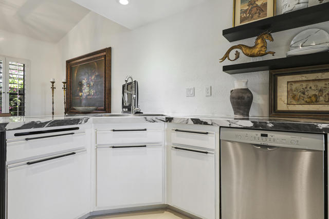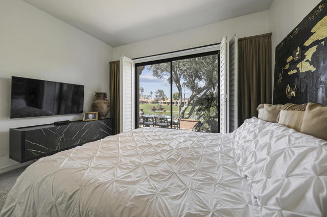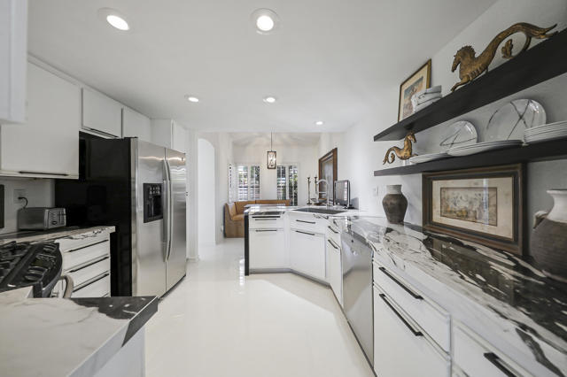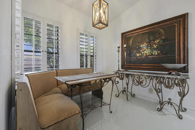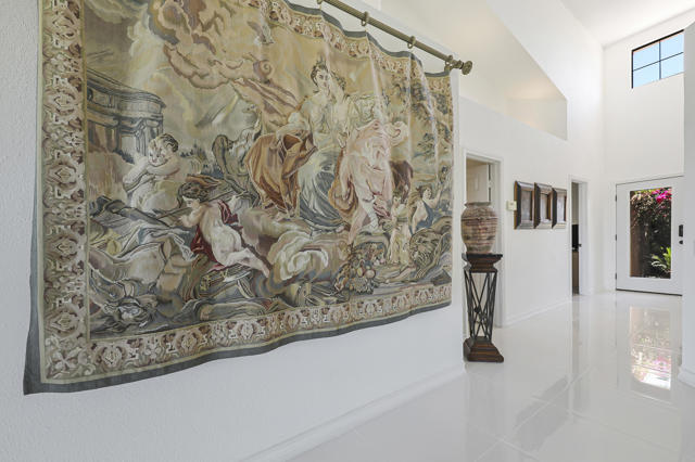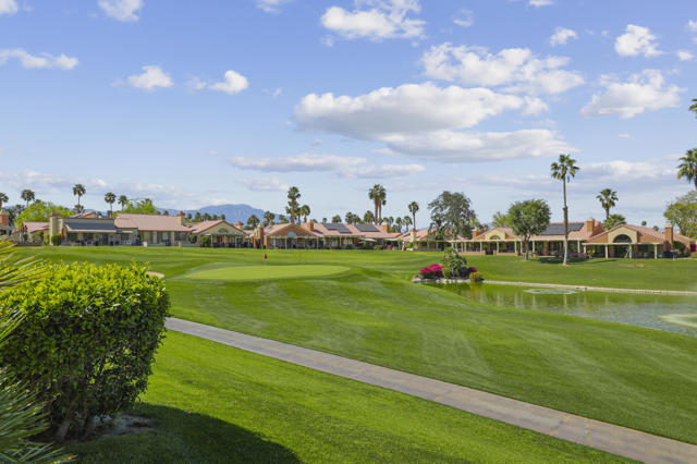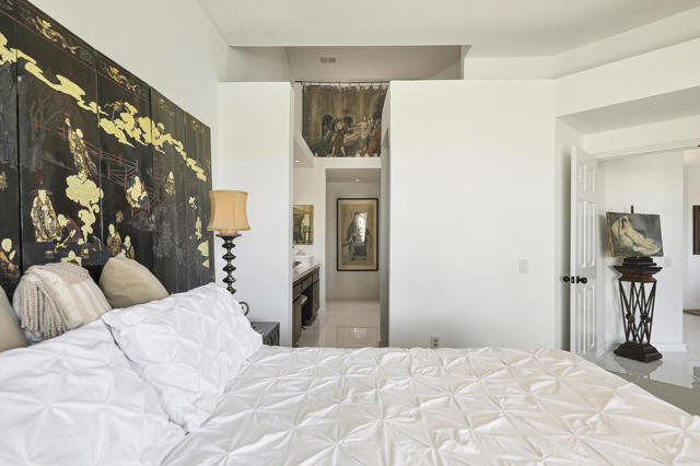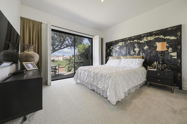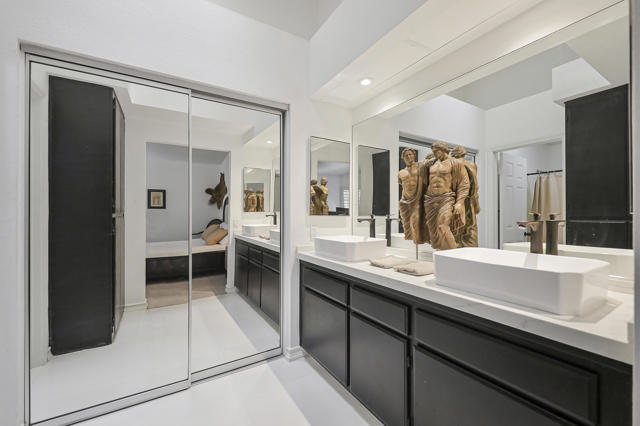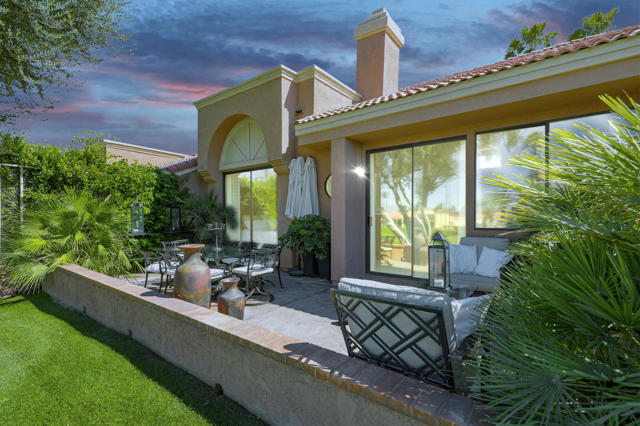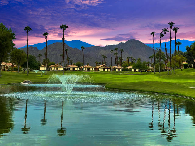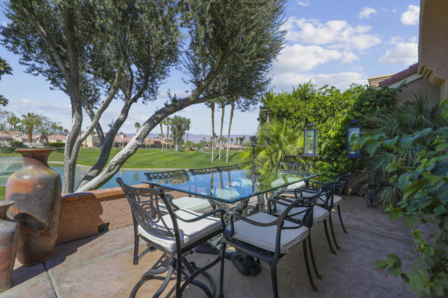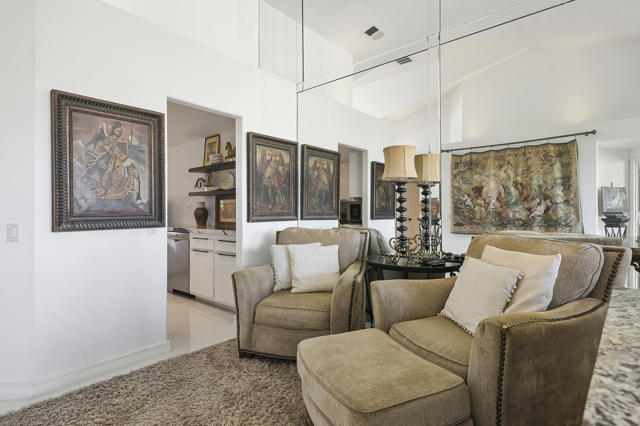 Located within the prestigious Oasis Country Club, this distinctive residence is one of only 11 executive models in a 662-home community, offering exceptional privacy and architectural presence. The home is located on the golf course featuring dramatic 22-foot ceilings, expansive natural light, and an open, modern interior. Positioned on an elevated lot overlooking the 14th fairway of a highly regarded championship golf course, it enjoys sweeping approximately 160-degree panoramic views spanning Palm Springs, the San Bernardino Mountains, and the Coachella Valley.The thoughtfully designed floor plan includes two private bedroom suites--a primary suite and a junior suite--each with en-suite baths, along with an additional powder room. The primary bathroom showcases soaring ceilings, creating a spa-like retreat. Recent upgrades include premium imported Italian porcelain tile flooring and porcelain slab countertops throughout the kitchen and bathrooms, blending contemporary elegance with durability.Fully remodeled in 2023 with over $100,000 invested in high-quality upgrades.Outdoor living is enhanced by two private patios. The south-facing, gated entry courtyard features a fountain and lush landscaping, while the rear patio is ideal for dining, grilling, or enjoying sunset views perched over golf course views. Both patios and the two-car garage feature custom finishes.The Oasis Country Club is a centrally located, member-owned community known for its strong management and exceptional amenities, including fine and casual dining, Ted Robinson designed 18-hole golf course, an 18-hole putting course, tennis and pickleball courts, multiple pools and spas, and 24-hour guard-gated security. This property offers a refined desert lifestyle in one of Palm Desert's most sought-after communities.