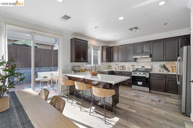 Welcome to 87 Greystone Place, a 5 bedroom newer home in the desirable Greystone community of Pittsburg. This spacious residence features an attached junior ADU, an oversized upstairs loft—perfect for a second living area, and lots of storage throughout. The home has fresh new carpet and modern upgrades creating a clean, move-in ready feel. The kitchen is equipped with a brand-new stove and refrigerator, and all appliances are included, making your transition seamless. A standout feature of this property is the attached junior ADU with its own private entry, kitchen, and full bathroom—ideal for renting, multigenerational families, young adult children or guests. For added privacy, the space can be enclosed with drywall to create a fully separated living area with no direct access to the main home. The garage is a true bonus, featuring a fully equipped gym that seller is open to allowing to convey with the property. There's a Peloton bike, treadmill, punching bag, box jumps, and a CrossFit weight system—perfect for maintaining an active lifestyle from home. Conveniently located near BART, shopping, dining, and everyday amenities, this home offers both comfort and accessibility for commuters and those who enjoy having everything within easy reach.