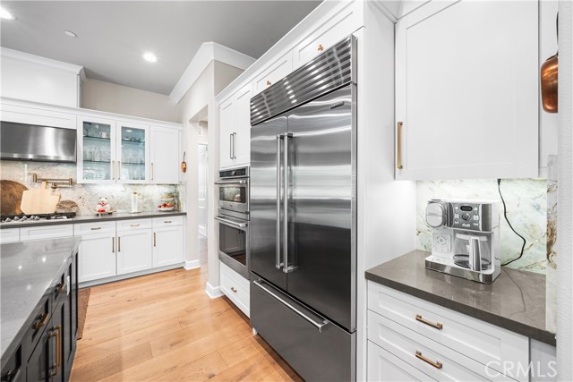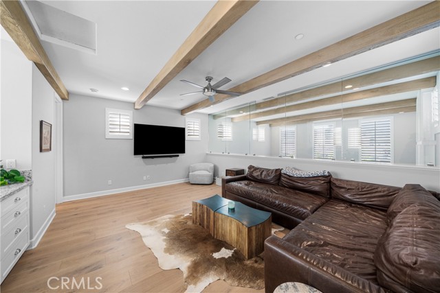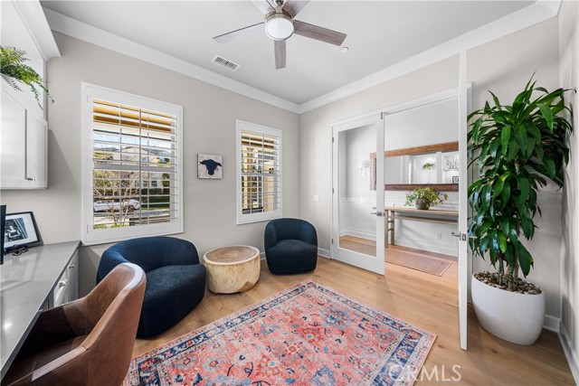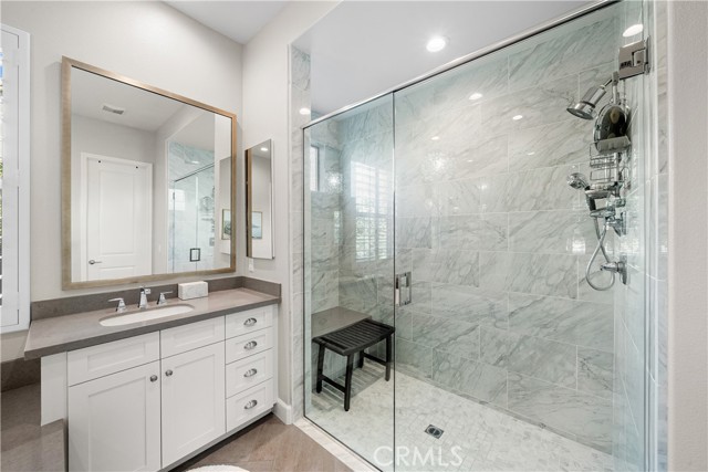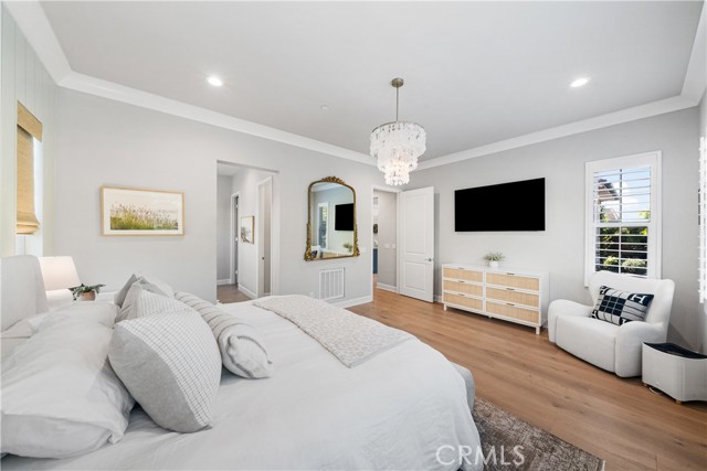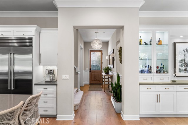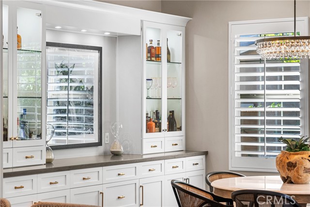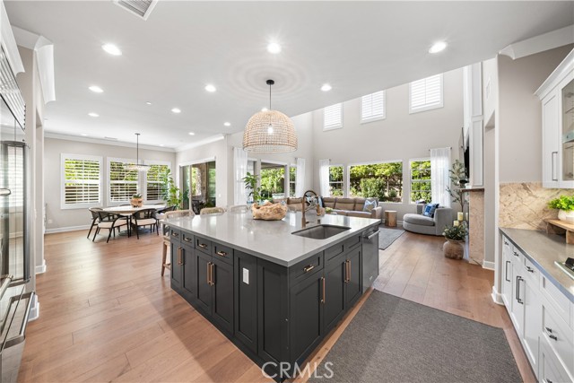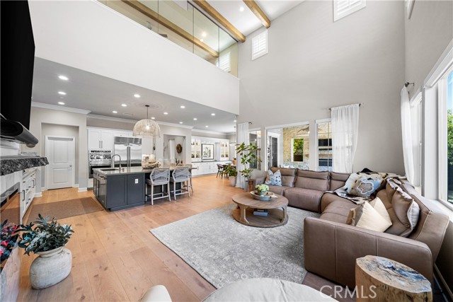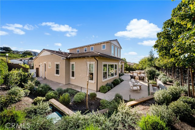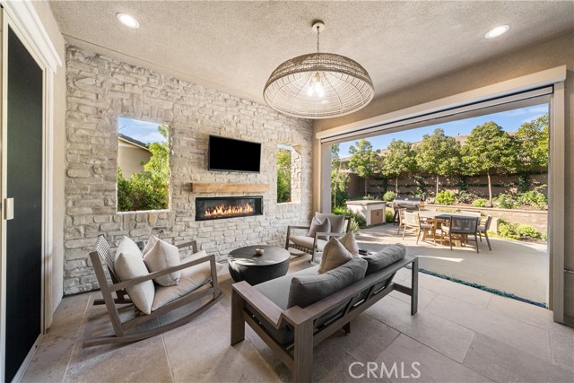 Welcome to 19 Arada in the Alondra 55+ community of RMV, where dreams do come true. Indulge yourself in this reimagined California casual sensation with harmonious blends of contemporary elegance and classic design offering the perfect balance of style, sophistication and comfort. Expansive windows, open concept living areas and premium finishes throughout create a seamless flow connecting the indoor and outdoor spaces. At the heart of the home is a gourmet kitchen, featuring top-of-the line stainless appliances with sleek Quartz counter tops and Carrera marble back splash. The luxurious primary suite is a true sanctuary with views of the freshly landscaped backyard, spa inspired bathroom with double sinks, soaking tub, walk-in shower and generous closet by California Closets, upstairs is a private bonus room with powder bath, and don't forget the downstairs office/den with custom cabinets and glass doors for privacy. The living experience extends to the outdoors with a California room detailed in stone, porcelain tile paving, fireplace and TV creating the perfect setting to host alfresco dinners or simply enjoy the outdoor entertainment with multiple water features, seating spaces, cozy fire pit and BBQ area where every detail has been carefully considered to create a serene escape from the everyday. In addition to the exquisite design, the homes modern amenities include 8" plank hardwood flooring, plantation shutters, custom window treatments, wood beamed ceilings, designer paint and carpet, wood siding in the bedrooms, wains coating in the entry hallway and crown molding all elevating the living experience. The home is equipped with solar panels and Tesla batteries providing efficiency and sustainability, while lowering your environmental footprint. The spacious 2 car garage and golf cart garage have epoxy flooring and custom floor to ceiling cabinets.