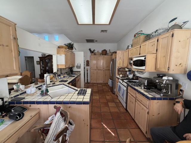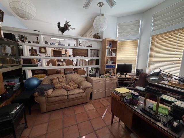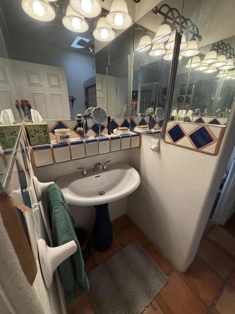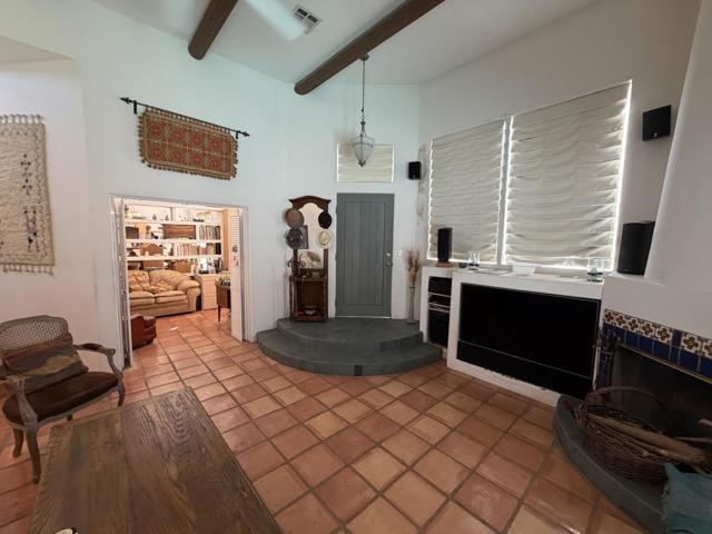 How often do we hear the words ''breathtaking'' or ''takes your breath away'' and wonder if they truly deliver? In this case, there's no doubt. The panoramic, spectacular views of the Santa Rosa Mountains from this home are simply unforgettable. Located in the highly desirable La Quinta Cove, this 3-bedroom, 2-bath Santa Fe style home captures your attention the moment you enter through the private front patio. Its unique floor plan and charming Southwestern details, such as soaring exposed beamed ceilings, Mexican tile flooring, and colorful tile accents in the kitchen and bathrooms, create a warm and inviting atmosphere ready for your personal touch. Enjoy cozy evenings by either of the two wood-burning fireplaces, including a dual-sided fireplace shared between the primary bedroom and bathroom, perfect for relaxing in the jacuzzi tub. The third bedroom is currently used as a den/office and can easily be converted back to a bedroom. Additional features include a 2-car attached garage, indoor laundry area, and a workshop with direct home access. Step outside to your private heated pool and spa, ideal for both relaxation and entertaining. The outdoor space connects seamlessly to the front patio, complete with a barbecue area, perfect for enjoying stunning mountain views while hosting guests. Just minutes from the fine dining, boutique shopping, and charm of Old Town La Quinta, this home is ideal as a full-time residence or seasonal retreat. A truly special opportunity awaits.