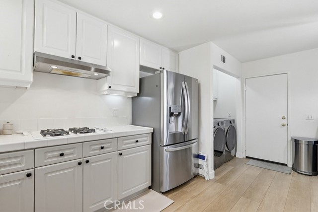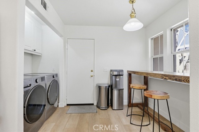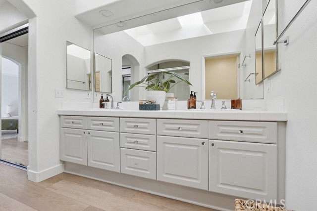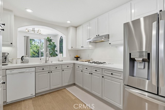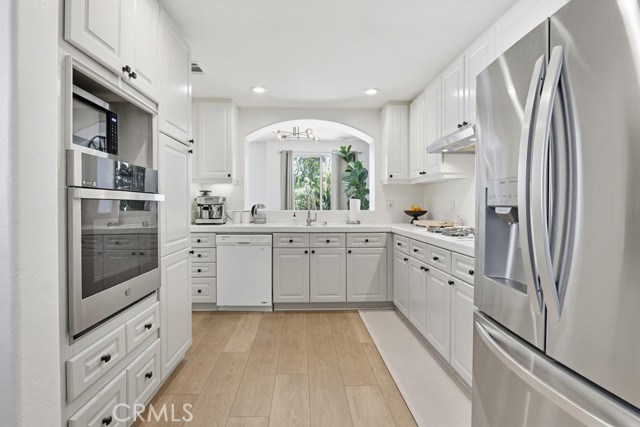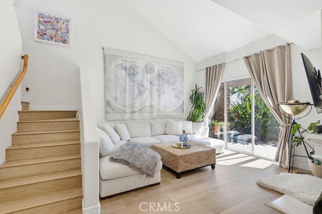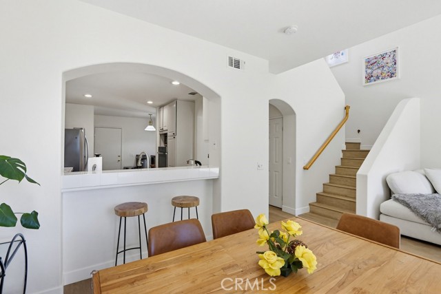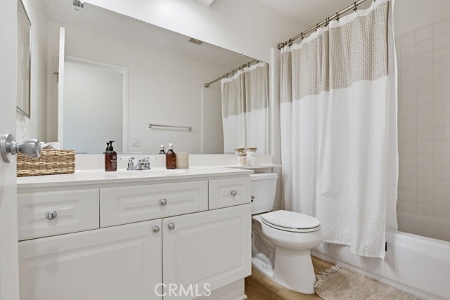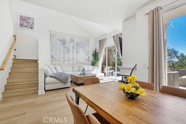 Welcome to your dream home nestled in the scenic hills of Aliso Viejo. This beautifully appointed 3-bedroom, 2.5-bath residence offers an exceptional blend of comfort, convenience, and picturesque surroundings. Step inside to a bright and airy living room, where soaring ceilings and abundant natural light create an inviting, open atmosphere. The thoughtfully designed main level features a seamless open-concept layout connecting the living room, dining area, and kitchen—perfect for both everyday living and entertaining. The kitchen is ideally positioned with a breakfast bar that opens to the dining space, while also providing direct access to the laundry area, which accommodates full-size washer and dryer units, and the attached two-car garage for added convenience. The garage is pre-wired for EV charging. Upstairs, you’ll find three well-proportioned bedrooms offering flexibility for a home office, guest room, or additional living space. The spacious primary suite is a true retreat, highlighted by vaulted ceilings, large, south-facing windows, and oversized dual mirrored closets. The en-suite primary bathroom features dual vanities, a private water closet, and a large skylight that fills the space with natural light throughout the day. A standout feature that runs throughout the home is the newly installed wood-toned vinyl plank flooring throughout—stylish, durable, and incredibly easy to maintain, making it ideal for busy lifestyles or pet owners. Enjoy indoor-outdoor living with a private back patio accessible from both the living and dining rooms. Surrounded by lush hillside landscaping and mature trees, this tranquil space also offers charming peek-a-boo views of the surrounding hills. Residents of the desirable La Mirage community enjoy access to resort-style amenities, including a private pool, spa, BBQ area, and tennis court—all nearby within the well maintained complex. Ideally located near award-winning schools, scenic hiking and biking trails in Aliso and Wood Canyons Wilderness Park, recreational facilities at Soka University, and the shopping, dining, and entertainment of Aliso Viejo Town Center, this home truly captures the best of South Orange County living.