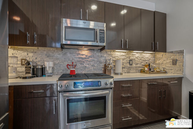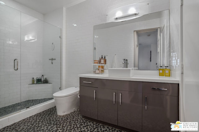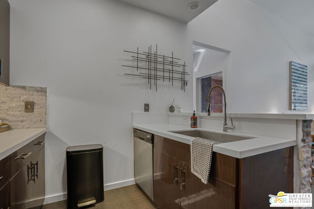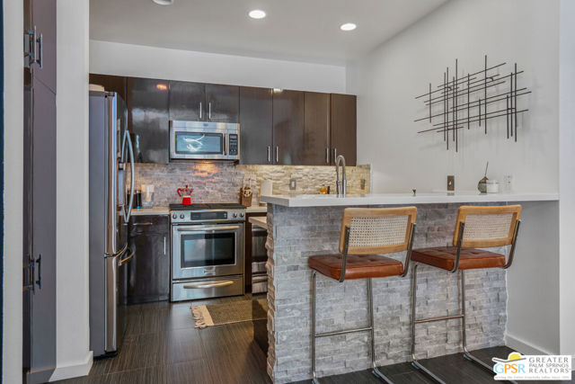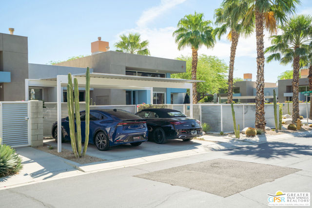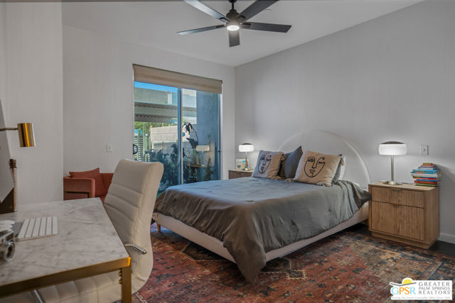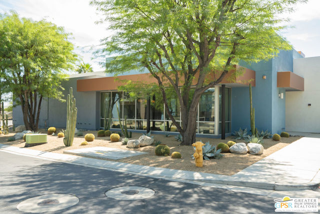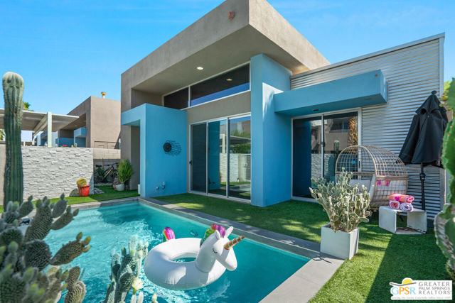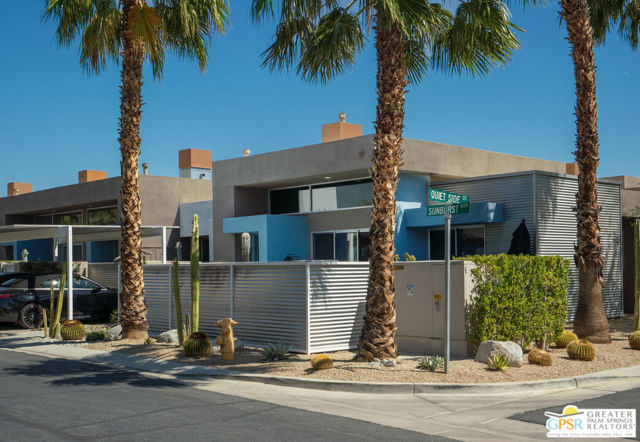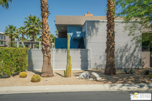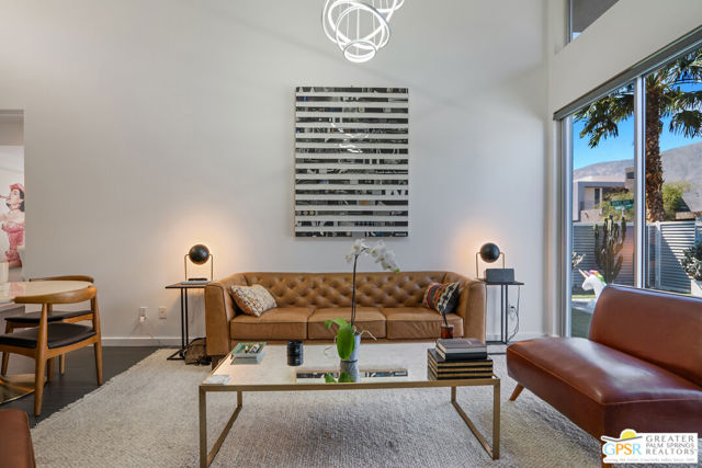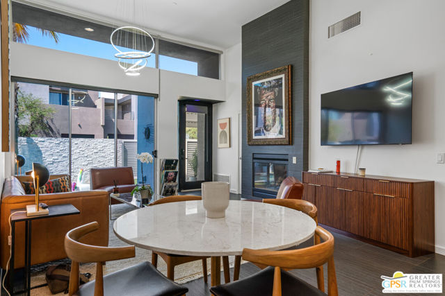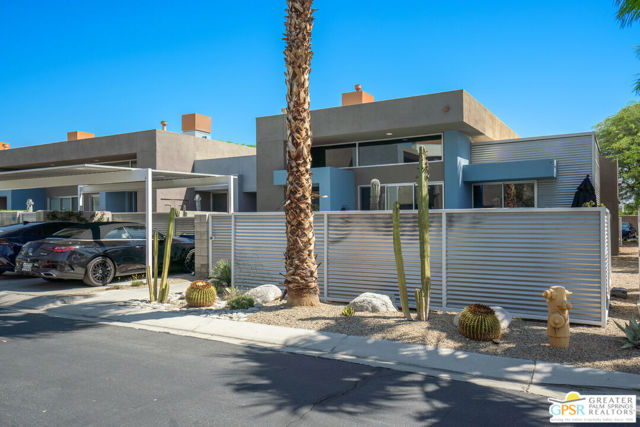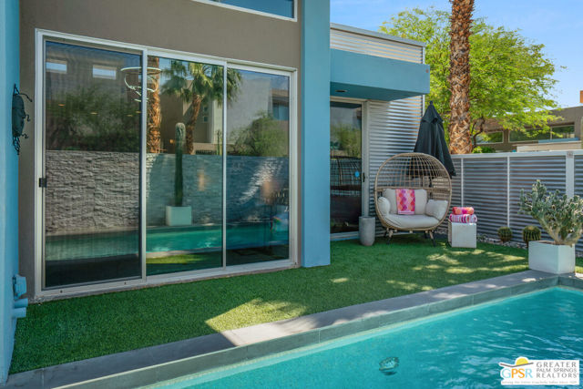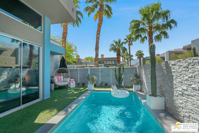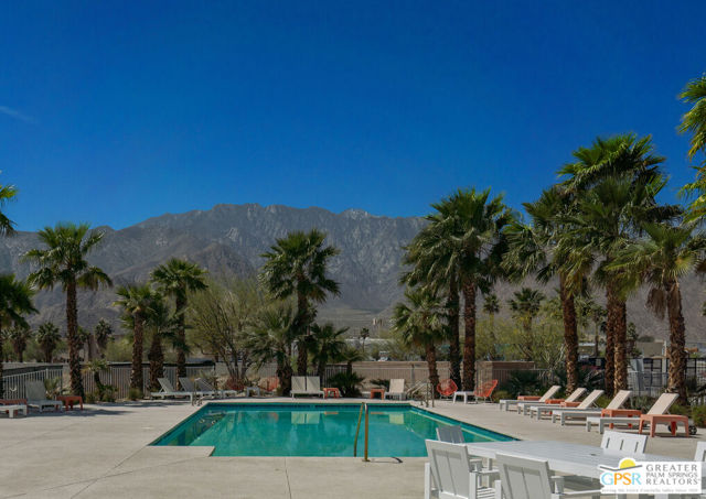 Welcome home to your Pied--terre in Palm Springs! This lovely, private, single story, 2 beds, 2 baths, with saltwater pool-- is ready to move right in. Tasteful finishes and perfect flow. Bedrooms on either side of common area, again, fantastic privacy. On a corner lot, one of 6 of it's kind. Wonderful double-sided fireplace. New HVAC, newer pool equipment. Laundry in unit. Community amenities include 2 pools, 2 spas, gym, and clubhouse. Gated and secure. Great for full-time occupancy, long-term rental, or just a week-ender getaway.