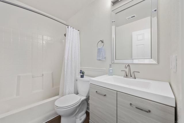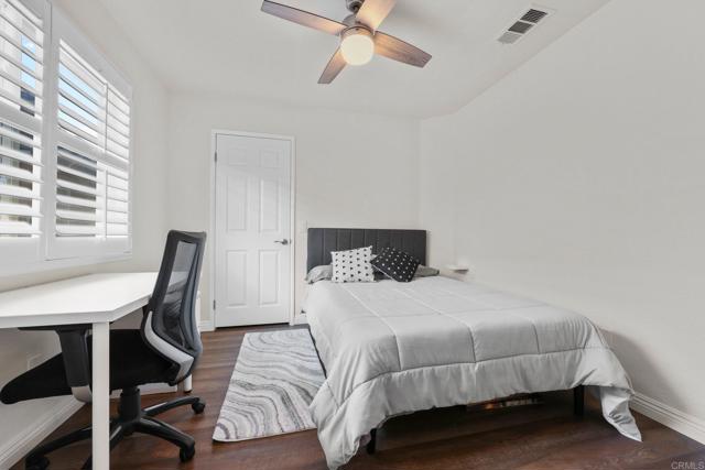 Tastefully remodeled 2-bedroom condo in a VA & FHA approved gated community—perfect for buyers looking for a move in ready home! Bright, open layout with hardwood floors, abundant natural light, and a modern kitchen featuring a large peninsula ideal for entertaining. Bedrooms are positioned on opposite sides for added privacy. All living space upstairs, with laundry room and attached garage on the ground level. Enjoy A/C and access to Eastlake Trails amenities, including pools, parks, and rec center. Prime location near Arroyo Vista Dual Immersion Elementary.