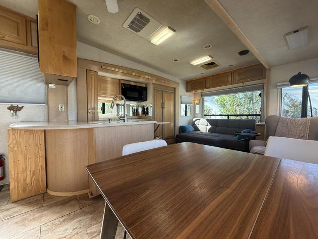 This adorable trailer home in the peaceful, gated 55+ community of Wagner Park in Desert Hot Springs--renowned for its laid-back lifestyle and natural mineral hot springs with therapeutic, rejuvenating benefits can be yours at a bargain price, or move it to your location. This charming updated trailer is adorably appointed with the window treatments and furnishings, and the kitchen features a full-size refrigerator and freezer, an oven, a double sink with a modern faucet, and a full-size shower with a tub, skylight, and separate toilet. I love the mirrors all around that let the sunshine shine through, creating a much larger feel. Set at the edge of the desert, this tranquil setting offers stunning mountain views, quiet surroundings, and incredible star-filled night skies. Ideally located just minutes from Palm Springs, you'll enjoy easy access to world-class dining, shopping, entertainment, golf, and healthcare, as well as nearby hiking trails and the breathtaking landscapes of Joshua Tree National Park.This turnkey property features a well-maintained and beautifully appointed 2003 Palisades 33-foot 5th wheel, fully furnished with kitchen supplies and linens -- perfect as a vacation home, seasonal getaway, or full-time residence. The roof has been recently resealed with a double coat for added durability and energy efficiency. There's an 8x10 metal storage shed and storage units under the trailer.Relax outdoors on your private patio, complete with furniture, privacy fencing and mature desert landscaping with drip irrigation, creating a serene space to unwind and enjoy the year-round sunshine.Additional highlight is a low monthly space lease of just $541--one of the most affordable in the area. Lease includes water, trash, and yard waste removal.Wagner Park amenities include healing mineral water hot pools and spas, including a cold plunge, as well as a heated mineral swimming pool ideal for daily relaxation, relieving aches and pains, and wellness. The clubhouse hosts seasonal gatherings and features a pool table, lending library, and full kitchen. The community also offers a dog park and a friendly, active atmosphere.Enjoy a quiet location with miles of hiking, walking, and biking just outside the gate--perfect for embracing the desert lifestyle.Call today to schedule your tour!