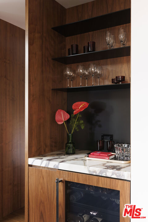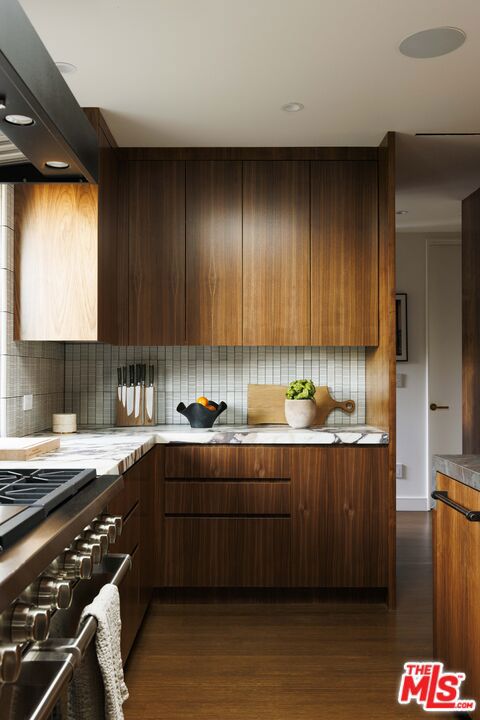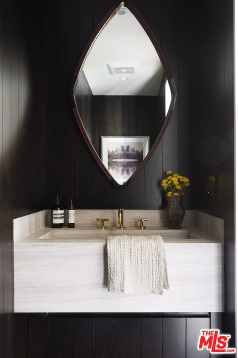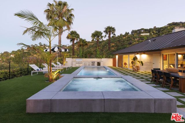 Welcome to this one-of-a-kind mid-century masterpiece, meticulously designed and fully renovated with a captivating blend of elegance and tropical modernism. Crafted by renowned designer Jacquelyn Seerman and featuring landscape artistry by Thomas Schoos, this home offers a living experience that's truly unparalleled. Completed in January 2024, this gated house not only showcases an inspired redesign but also boasts all-new systems throughout. Every aspect of the home has been updated to the highest standards, ensuring modern functionality and comfort, no expense was spared in this transformation. As you approach, the original mid-century walnut front doors adorned with stunning stained glass set the tone for the quality and style found throughout. Inside, the home boasts exquisite walnut millwork and beautifully refinished bamboo floors, preserving the home's timeless charm.The kitchen is straight out of Architectural Digest, featuring honed Viola marble countertops and custom walnut cabinetry, providing both beauty and functionality. Every detail has been carefully curated, from the Emtek unlacquered brass hardware, fixtures, and faucets, to the original terrazzo floors that echo the home's sophisticated intimate past.Step outside to a lush tropical landscape, perfectly framed by ipe gates and fencing. Enjoy the California lifestyle with a fully equipped alfresco outdoor kitchen, ideal for entertaining under the stars. The standing seam roof adds to the home's architectural appeal, while the unmatched panoramic views of Studio City offer the best in luxury living.This impeccably maintained, one-owner home is a rare find, blending mid-century design with tropical modernism flair. With every system and detail meticulously updated, it's truly a gem in the hills of Studio City.