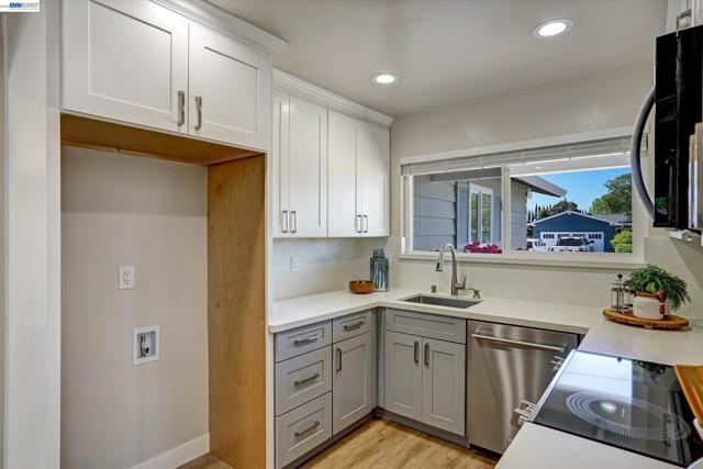 Popular single-story home, thoughtfully remodeled throughout, situated on a cul-de-sac with a premium corner lot location. This desirable light and bright open-concept floor plan features three bedrooms and two full bathrooms, all on one level—ideal for first-time buyers, those looking to move up or downsize, or anyone seeking a home without stairs. Recent upgrades include freshly painted interior and exterior finishes, canned led lighting throughout, a beautifully remodeled kitchen with quartz countertops, stainless steel appliances, soft-close cabinetry, and space for an island or eat-in dining. The bathrooms have been fully renovated with modern finishes like contemporary vanities, waterfall showers, and primary with elegant glass shower door and lighted mirror. The home is enhanced by durable, waterproof luxury vinyl plank flooring, updated baseboards, and new dual-pane vinyl windows throughout. The expansive 6,424 sq ft lot offers exceptional versatility, including potential side yard access ideal for RV/boat parking and plenty of room for an ADU. Perfectly located just minutes from historic downtown Livermore, fantastic schools, award-winning wineries, dining, shopping, parks, and more.