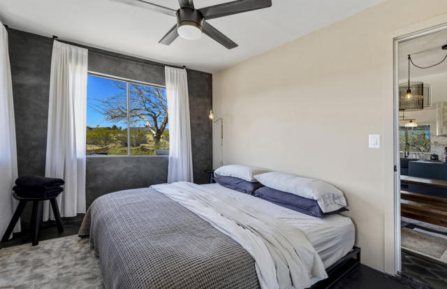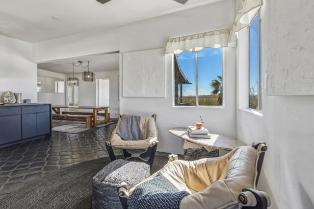 Nestled just a stone's throw from the iconic La Copine restaurant, this 1962 mid-century desert cottage is a rare gem in the heart of Yucca Valley's trendy Flamingo Heights. Set on an expansive 2.7-acre lot of stunning high desert landscape, this property is a dream waiting to be realized. With 2 bedrooms, 2 bathrooms, and an incredible bonus room that can flex as a private office or an extra bedroom, the home offers both charm and versatility for modern living.Inside, vintage character meets thoughtful upgrades, including a show-stopping Smeg refrigerator that adds a pop of retro elegance to the kitchen. Original architectural elements celebrate the home's mid-century roots, while the open layout invites your creative vision to craft the ultimate desert escape.Step outside, and the magic continues. The expansive outdoor spaces feature breathtaking panoramic desert vistas and a sense of peace and privacy that's hard to match. Whether you're hosting friends, stargazing under the crystal-clear skies, or embracing your inner child on the built-in in-ground trampoline, this property is designed for unforgettable moments.All this, just minutes from Joshua Tree National Park, local shops, and a vibrant dining scene. Whether you're seeking a serene retreat, a creative haven, or an investment opportunity, this property perfectly balances style, seclusion, and convenience. Your desert oasis awaits.