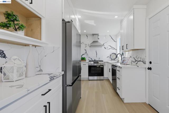 A perfect starter home that is fully updated, set on a spacious lot, blending modern finishes with timeless charm in a convenient San Leandro location! This tastefully updated home features new interior and exterior paint, new flooring, a fully renovated kitchen and bathroom and updated light fixtures, all coming together to create a clean and modern feel while still preserving the home’s original character. The warm and inviting layout offers a comfortable space to relax, unwind and enjoy everyday living. Set on a spacious lot, the property offers endless possibilities for expansion, adding an ADU or creating your ideal outdoor space. Whether you envision future additions, entertaining areas or simply enjoying the extra room, the lot provides flexibility to grow with your needs. Located near local dining and shopping, including Bayfair Mall, this home offers easy access to everyday conveniences. With quick connections to I-880, I-580 and Highway 92, commuting throughout the Bay Area is simple and convenient. This San Leandro home combines modern updates, charm and future expansion potential in one complete package. Come check it out!