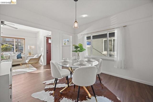 Charming Emeryville bungalow offering 2+ bedrooms & 1.5 baths. Step inside to a sun-drenched living room & dining room w beautiful built-ins. The spacious eat-in kitchen features stainless steel appliances. The large main-level primary bedroom is situated in the back of the house w a large closet, while upstairs offers a cozy second bedroom w en suite half bath, plus a bonus office or study—ideal for working from home. The main floor bathroom is beautifully updated w a deep tub. There is a low maintenance backyard complete w a storage shed for added convenience. Additional highlights include stackable washer/dryer, dual pane windows, updated electric panel & wire, newer roof, & a mini-split system for efficient heating and cooling. Fenced shared driveway for off street parking. 91 Walk Score® & 98 Bike Score®! Ideally located near Temescal, Downtown Oakland, & the Emeryville Public Market, with easy access to shopping, dining, coffee, movies, & everyday amenities. Commuters will love the proximity to BART, Amtrak, AC Transit, and major freeways —making travel to San Francisco, Berkeley, Oakland and beyond a breeze. Attn: first time homebuyers, SF commuters, investors don’t miss this convenient turn key opportunity. Pass on that condo w the high HOA & buy this adorable bungalow!