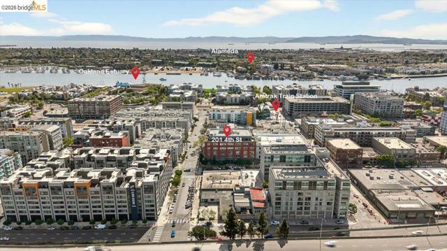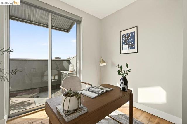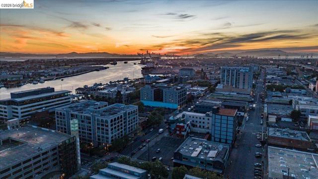 Loft-style penthouse at 201 4th Street #601 in Oakland’s New Market Lofts. This top-floor residence offers approximately 1,360 sq ft of interior space and an generous ~900 sq ft private patio with southwest and northwest exposure, featuring afternoon sun and San Francisco skyline and Bay views. Rare indoor-outdoor living in a prime waterfront location. Interior features include heritage French white oak flooring with oil-rubbed and baked finish, Siemens washer and dryer, Bertazzoni kitchen appliances, and abundant natural light throughout. Additional highlights include two parking spaces and convenient access to BART, freeways, Jack London Square dining, Sunday farmers market, and the ferry to San Francisco.