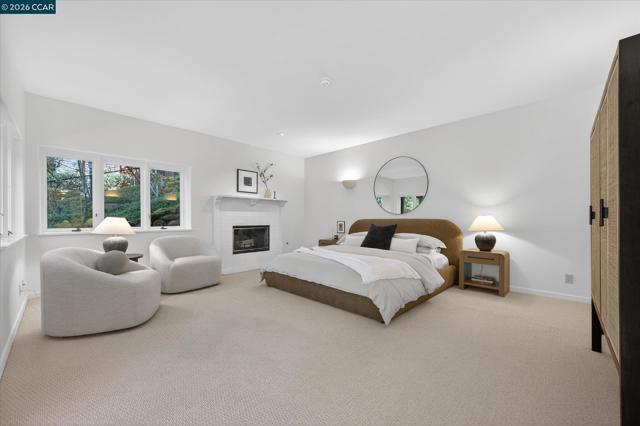 Arrive beneath a canopy of blooming wisteria & step into a private courtyard where a stone fountain and flowering vines set the tone for this architecturally singular Santa Barbara inspired retreat. Set among ancient oaks with sweeping valley views, this 4,112 sq ft masterwork offers 4 beds + office, 3.5 baths, and a 3-car garage. Soaring vaulted ceilings, hardwood floors, sculpted archways, and a dramatic kiva fireplace anchor the living room. The updated chef's kitchen flanked by a formal dining room and sun-drenched breakfast room, both with valley views, offers stainless appliances, new countertops & tile backsplash as well as a center island and Spanish tile floors. Fabulous indoor/outdoor flow from the kitchen to the entry courtyard as well as the access from the generous family room via French doors to sweeping treetop decks with a hot tub. The serene primary suite offers a fireplace & private balcony nestled into the oak canopy. There is a second en-suite bedroom on the main level that is outfitted with built-inn desks & a murphy bed offering flexibility. Set in the Orinda Woods HOA which includes pool, tennis courts, BART shuttle & more. This location is a 10! Minutes to downtown Orinda's farmers market, shops, restaurants, commute top-rated K–12 schools. Welcome Home!