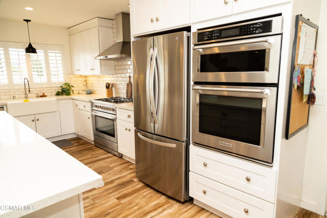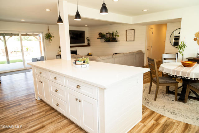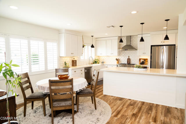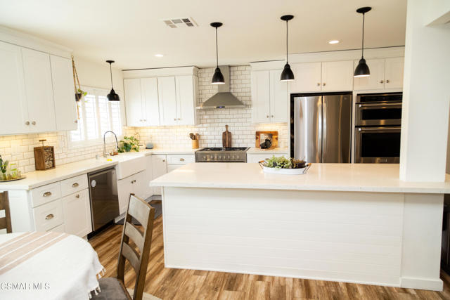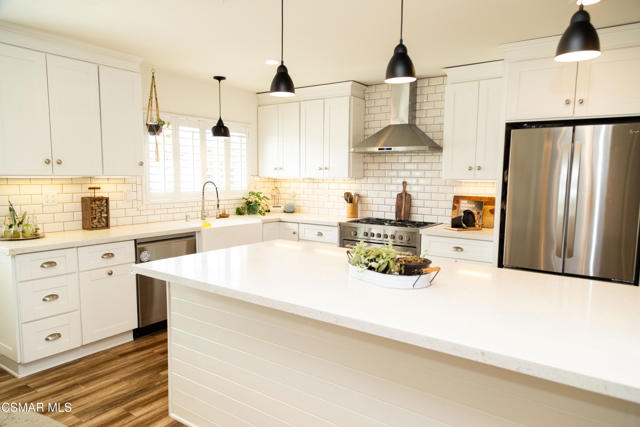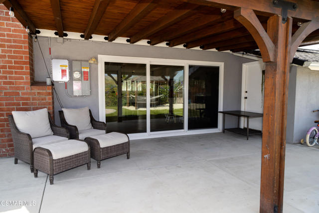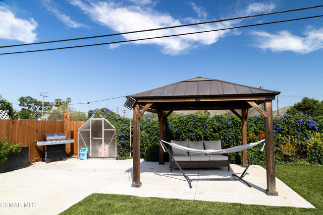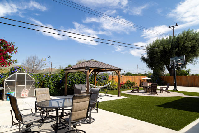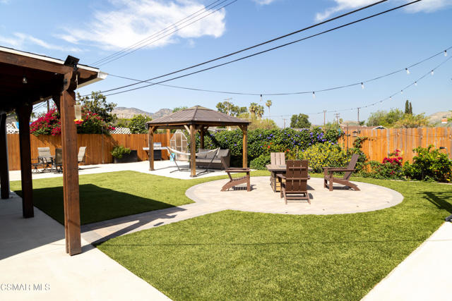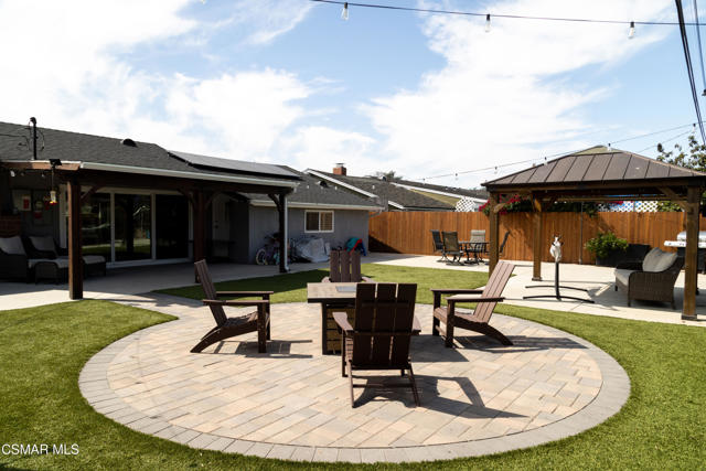 Beautifully remodeled and thoughtfully upgraded, this 4-bedroom, 2-bath Newbury Park home is a must-see. Designed for today's lifestyle, the interior has been reconfigured into a spacious open-concept floor plan that seamlessly connects the kitchen, dining, and living areas--ideal for both everyday living and entertaining.A comprehensive professional remodel in 2017 brought this home to the next level, including a new roof, dual-pane windows and sliders, updated HVAC system with Nest controls, wood-grain flooring, fresh interior paint, new doors, and stylish louvered window treatments throughout.The stunning kitchen is the heart of the home, featuring top-grade stainless steel appliances, a large farmhouse sink, expansive quartz countertops, and an impressive amount of storage--all opening directly to a generous family room with a cozy fireplace.Both bathrooms have been tastefully upgraded with new tile, fixtures, lighting, and ventilation, offering a clean, modern feel.Step outside to a beautifully designed, low-maintenance yard with artificial turf in both the front and back. Enjoy multiple outdoor living spaces including stone pavers leading to a charming sitting area, a gazebo, and a newly built covered patio with a full roof--perfect for year-round enjoyment. The property also features a basketball hoop with a concrete court, storage sheds included, and scenic mountain views.Additional highlights include a fully owned $70,000 solar system, providing significant energy savings, as well as a versatile bonus area at the back of the garage that has been converted into a private office and soundproof music room.This home offers the perfect blend of modern upgrades, functional living space, and inviting indoor-outdoor lifestyle--all in a desirable Newbury Park location.