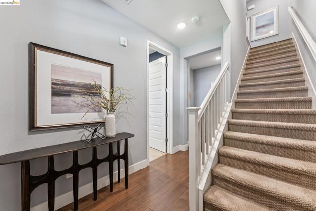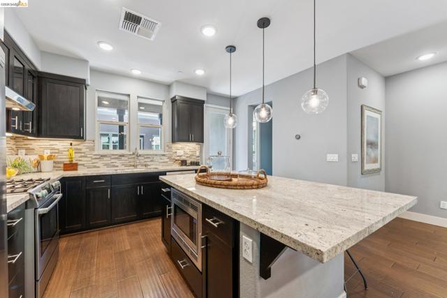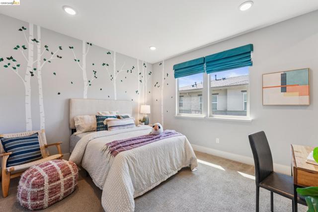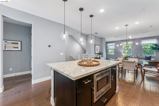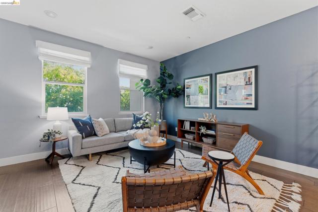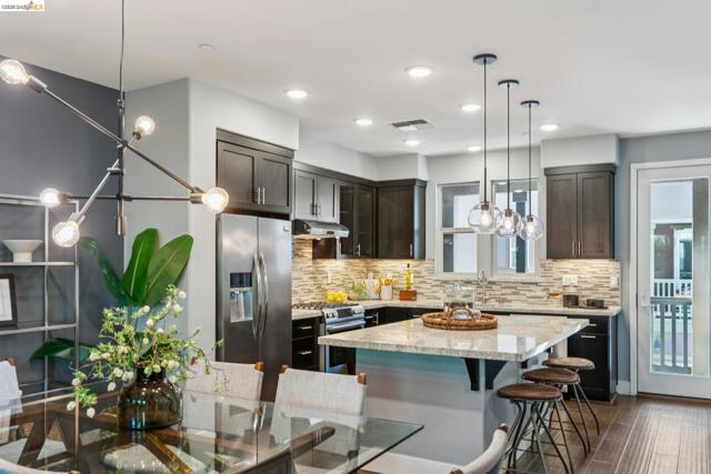 Stylish 3-Level Condo with Modern Finishes | 3BD / 3.5BA | Alameda Built in 2016, this well-maintained 3-bedroom, 3.5-bathroom condo offers approximately 1,784 sq ft of thoughtfully designed living space across three levels. The main living area features an open-concept kitchen, dining, and living room layout with access to a private balcony off the kitchen. The kitchen includes a large center island with breakfast bar seating, granite countertops, built-in cabinetry, and a spacious walk-in pantry, providing ample storage and functionality. Flooring throughout the home includes a combination of tile, hardwood, and carpeted bedrooms. All bedrooms offer comfortable separation across levels, and the home includes 3 full bathrooms plus a powder room off the kitchen for guests. Laundry is conveniently located on the third floor. Additional features include two-zone air conditioning, Nest thermostat system, and abundant thoughtful storage throughout. The property includes a 2-car attached garage and is located adjacent to a green community space. Guest parking is available along Diller Street. Convenient Alameda location with access to local amenities, shopping, and commuter routes.