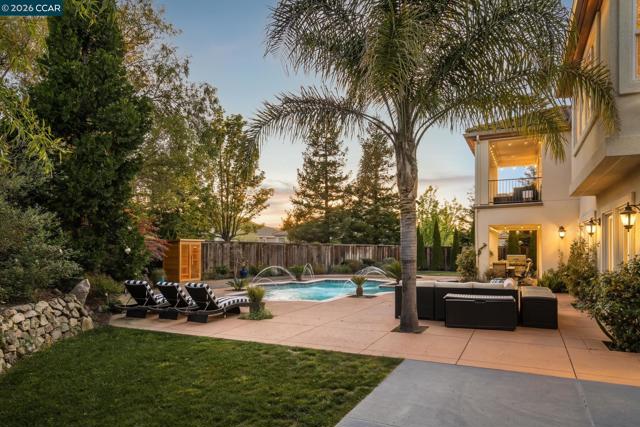 Nestled within the prestigious gated community of Norris Canyon Estates, this stunning home offers luxury living at its finest. Spanning almost 5,000 square feet, this exceptional residence features 5 bedrooms & 5.5 baths on an expansive, level .41-acre lot. An impressive grand entry welcomes you with a dramatic dual staircase & soaring ceilings. This floor plan includes formal living & dining rooms, a private office/library with custom built-ins, a sought-after main-level ensuite bedroom & seamless indoor-outdoor flow through French doors. At the heart of the home, the remodeled kitchen showcases a center island, premium Thermador SS appliances, custom cabinetry & opens to the family room, creating the perfect hub for everyday living & entertaining. The luxurious primary suite offers a fireplace, sitting area, private balcony & spa-inspired bath. All secondary bedrooms are generously sized & feature ensuite baths, providing comfort & privacy. Step outside to your own resort-style backyard retreat, featuring a solar & gas-heated pool/spa, expansive patios including covered outdoor living area, sport court & beautifully landscaped grounds with room to relax & play. Located in one of San Ramon’s most exclusive communities, just minutes from top-rated SRV schools, shopping & dining.