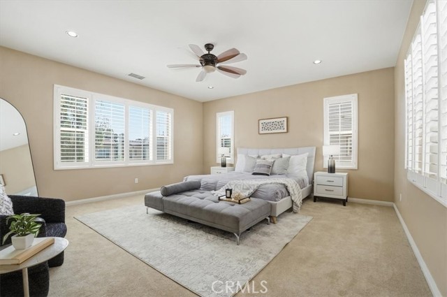 Distinctive & well designed beautiful house (4 bedrooms & 4.5 baths, over 3,000 square feet of living space). Located in master planned Edenglen community. Large formal living room & dining room. Gourmet kitchen with an oversized granite island for gathering and entertaining. The family room features a beautiful fireplace and is open to the kitchen. The kitchen features granite counter tops, a center island, stainless steel appliances & a built-in double oven. Home has been wired for entertainment and connectivity. Dual zone air conditioning. The Master Suite has huge walk-in closet, separate shower, soaking oval tub & dual sink vanities. There’s one full bedroom and bathroom down-stair plus an additional half bath for guests. A bonus room. This beautiful home is move-in ready. Owner just changed AC, water heater, floor and the carpet two years ago.The planned community offers resort-style amenities for recreations & relaxation. Including a beautiful Clubhouse, wraparound porch, beautiful trees and landscaping. Pinheiro Park offers large green lawn serves as amphitheater for movies. Swimming pool and children’s wading pool, playgrounds and tot lots, basketball courts, half mile long walking trail, BBQs for outdoor dining. Convenient to many shopping centers, Costco, 99 Ranch Market, dining and schools. Easy access to freeways 60, 10 and 15