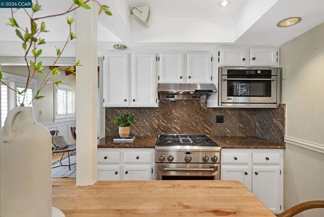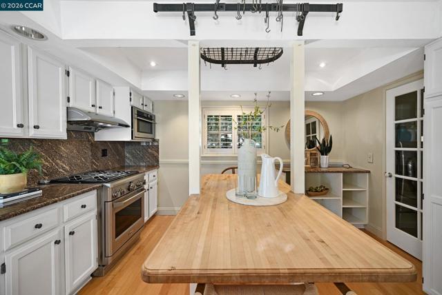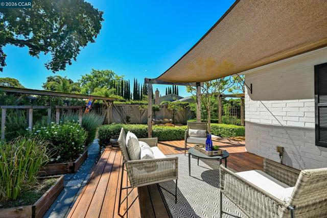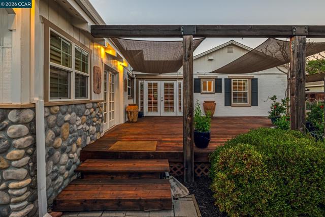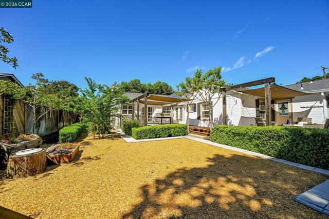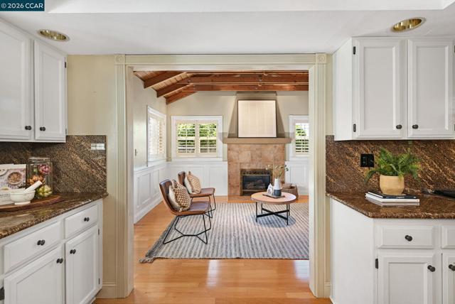 Carmel style charm boasting warmth, character and pride of ownership. This 3-bedroom, 2-bath residence features a spacious bonus room with an open wood-beam vaulted ceiling perfect for relaxing or entertaining. A stunning stone fireplace anchors the living space, while the updated kitchen offers granite countertops, gas range and a special kitchen breakfast bar gathering space for everyday living and hosting. Rich hardwood maple flooring throughout, custom shutters, and multiple French doors fill the home with natural light and create seamless indoor-outdoor flow. The beautifully landscaped front and back yards provide a true retreat. Enjoy a gardener’s paradise and entertainer’s dream backyard, complete with a large deck and integrated evening lighting. Additional highlights include a paver driveway, generous parking, and potential side yard access for RV or extra storage. Lovingly maintained by the same family for over 40 years, this home is ready for its next chapter!
