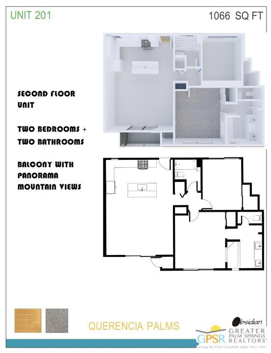 Unit 201 at Querencia Palms captures some of the most impressive panoramic views in the community, with the San Jacinto Mountains showcased from nearly every room, even the shower! As one of the largest floor plans available, the home offers an exceptional sense of space, light, and livability. The open-concept layout creates a seamless flow between the kitchen, dining, and living areas, ideal for both everyday living and entertaining. The private balcony extends the living space outdoors, complete with a generously sized storage closet for added convenience. Set within a lush, resort-style environment featuring water features, a koi pond, pool, spa, and fire pits, residents enjoy a relaxed yet elevated lifestyle just minutes from Downtown Palm Springs, dining, parks, and the CV Link. For buyers seeking a larger layout paired with standout mountain views, Unit 201 represents a uniquely compelling opportunity within Querencia Palms.