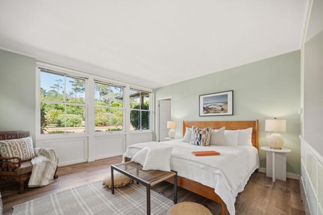 Atop the summit of Crespi Lane where some of the greatest estates were built in the early days of Pebble Beach, this delightful Mid-Century Coastal home enjoys Stillwater Cove and 17th Green views from within and without. Single level in design, the residence has the coziness of a cottage and the serenity of an estate where it lives large inside boasting walls of windows facing South and West; soaring vaulted ceilings with skylights throughout and a galley like grand hall where art and collectables can reside in full display. Bordered by Del Ciervo road this long and large corner parcel is a prize unto itself with 1.74 flat acres of open, spacious grassy meadows all around. Delightful as it currently is, there are plans in process under the keen eye of Jun Sillano, AIA of International Design Group, to transform into a grand estate akin to its neighbors on all sides, with an abundance living spaces and terraces overlooking the views. A thoroughly enjoyable residence now and an incredible opportunity to create a great Estate of your own.