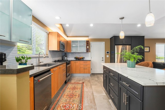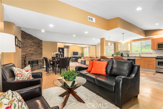 **Fully Renovated Woodland Hills Gem with Dual Primary Suites, New Roof & Prime Location!** Welcome to 20516 Aetna — a beautifully updated single-story home offering 4 bedrooms, 3 full baths, and ~1,975 sq ft on a spacious 9,100 sq ft lot with stunning city light views. Bright, open-concept layout with vaulted ceilings, abundant natural light, and seamless flow between the living room, dining area, remodeled kitchen, and expansive family room — ideal for entertaining. Rare **two primary suites**, including a private retreat with French doors, custom closets, and a spa-like bath featuring dual vanities, soaking tub, and walk-in shower. Extensive upgrades throughout: remodeled kitchen with custom cabinetry & quartz island, updated baths, hardwood flooring, newer HVAC with heat pump, upgraded electrical, tankless water heater, and more. **Brand new roof + fresh exterior paint** add major value and curb appeal. Ultra-private backyard with new landscaping, irrigation, vinyl fencing, electric gate, and multiple patio spaces for indoor-outdoor living. Prime location near Ventura Blvd, The Village at Topanga, top shopping & dining, and the Rams training facility. **Turnkey, upgraded, and priced to move — don’t miss this opportunity!**