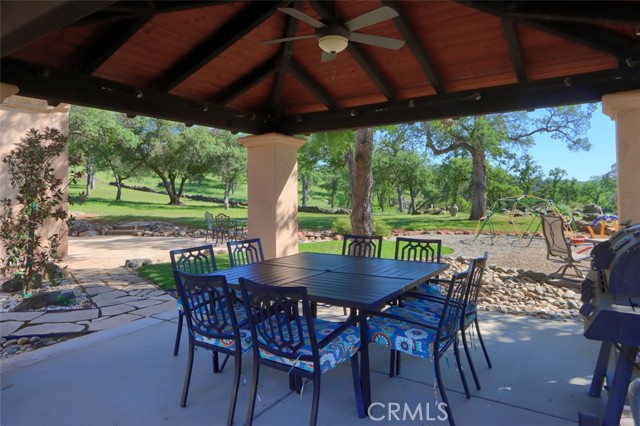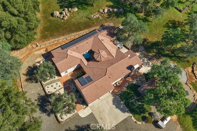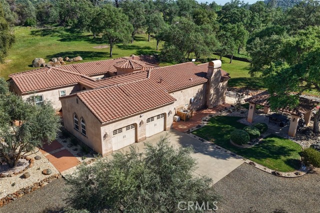 Tuscan-Inspired Italian Villa in Whispering Oaks West... Experience timeless elegance in this stunning Italian villa, nestled within the coveted Whispering Oaks West community—where residents enjoy access to a private lake, scenic equestrian trails, and peaceful biking paths. Designed for seamless indoor-outdoor living, this home showcases multiple travertine patios, including a charming courtyard entrance, a central open-air lanai with a cozy propane fireplace, and a separate veranda—perfect for entertaining or quiet relaxation beneath the oaks. At the heart of the home, the chef’s kitchen is both functional and refined, featuring a premium Viking range, convection oven, walk-in pantry, and an expansive island that flows effortlessly into the inviting family room with a cozy propane fireplace. The spacious primary suite is a private retreat, complete with French doors opening to the courtyard and a spa-inspired bathroom boasting a deep soaking tub and an oversized dual shower designed for two. Work from home with ease in the dedicated "Flex room" for a retreat space or a small room for having the grandkids over. Additional highlights include a separate laundry room, a convenient half bath, and a buffet bar just off the kitchen—ideal for entertaining. Throughout the home, you’ll find soaring ceilings, engineered hardwood flooring, and thoughtfully selected window treatments that enhance both style and comfort. Energy efficiency meets modern convenience with leased solar at just $100/month, helping keep utility costs low year-round. The property includes an oversized finished two-car garage along with a detached two-car workshop—perfect for hobbies, storage, or additional workspace. Set on 3.34 acres, the grounds are a serene blend of mature oaks and olive trees, rustic stone walls, and natural beauty. Enjoy peaceful mornings and tranquil evenings with birdsong echoing from every window and patio. You can also enjoy the deer and quail who wander by in this peaceful setting... A rare opportunity to own a private retreat where elegance, nature, and comfort come together.