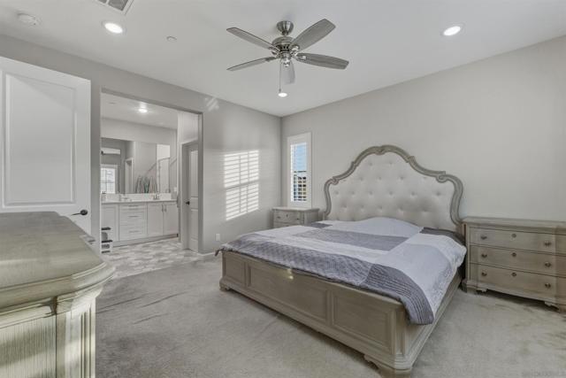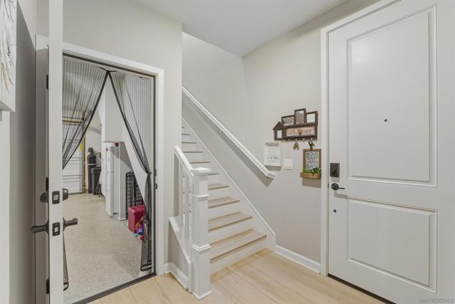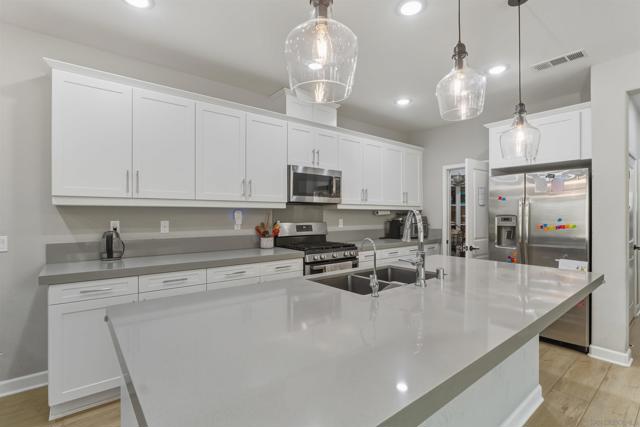 Welcome home to Pacific Village. Located in one of the newest and most-desirable townhome communities in the award-winning Poway Unified School District. No Mello-Roos fees. This home features and open-concept layout with the kitchen, family and dining room without walls is perfect for gatherings of friends and family. Chef's kitchen is highly-upgraded and has all the space needed to entertain guests, with a large island and sizeable pantry. Large balcony with plenty of space and views of Black Mountain. Primary bedrooms has a large closet and spacious bathroom, double sinks. Spacious attached 2 car garage and driveway, in addition to 2 parking decals and 2 guest permits. Tankless water heater and solar panels. Reverse osmosis, water-softner and many other smart features.