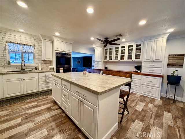 ****PRICE REDUCTION***** Welcome to this well-maintained, one-owner 3-bedroom, 2-bath home featuring thoughtful custom touches throughout. Upon entry, you're greeted by beautiful wood flooring leading into the formal living room, highlighted by a picture wall and expansive city views. The elevated kitchen offers a built-in double oven, five-burner stovetop, microwave, and a charming built-in hutch/coffee bar with a butcher block countertop. A kitchen window overlooks the covered backyard porch, and a spacious island with seating for four makes casual meals easy and convenient. Enjoy larger gatherings in the dedicated dining area, adjacent to a cozy den featuring custom cabinetry for storage and media. Ceiling fans are included in all bedrooms and den (excluding the living room). Home includes 1 full bath and 1 three-quarter bath. The private backyard is fully fenced and includes a covered patio with TV hookup, ideal for relaxing or entertaining. There's also ample space for RV parking or future additions. Don’t miss this opportunity to own a spacious, move-in ready home with unique features and a layout perfect for everyday living and entertaining. Schedule your private showing today!