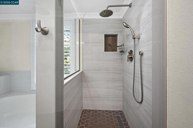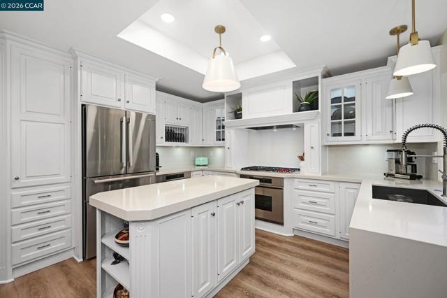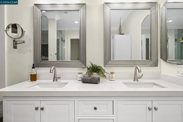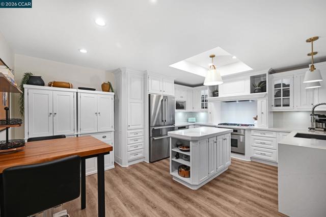 Step inside a welcoming, light-filled home thoughtfully refreshed w/high-quality updates throughout. Perfectly located near downtown Walnut Creek & minutes from Larkey Park, this residence blends everyday comfort w/unbeatable convenience. Entertain or relax effortlessly in open living spaces that flow seamlessly into a modern, updated kitchen featuring quartz countertops, a Wolf 5-burner gas cooktop, Dacor double oven, Bosch ss appliances, and stylish LED & pendant lighting. Luxury vinyl plank flooring, fresh interior paint, new windows, updated lighting, new plantation shutters, & a striking designer white-oak feature wall add warmth and contemporary style throughout. The home also offers a large bonus room/flex space w/ensuite. Bathrooms have been tastefully updated w/quartz finishes & modern fixtures, including a serene primary suite designed as a private retreat. Smart home features include a Smart thermostat & MyQ garage opener, while the private patio w/evening lighting offers a peaceful outdoor escape. A finished oversized 2-car garage w/storage completes this exceptional home. Come see this beautifully updated home in one of Walnut Creek’s most sought-after neighborhoods. This move-in ready home won't stay on the market long. HOA includes water, pool/spa & sports court.