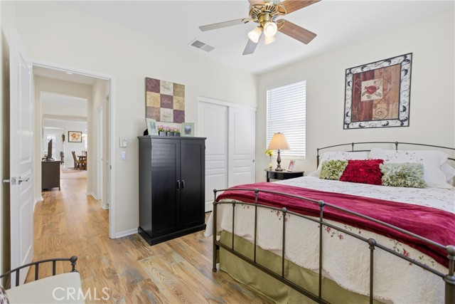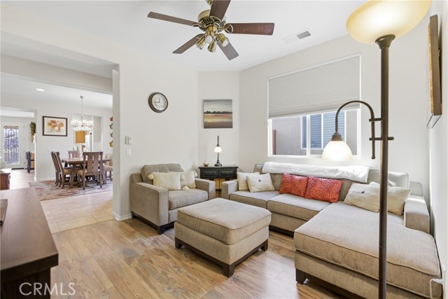 Welcome to resort-style living in the highly desirable Four Seasons 55+ active adult community in Hemet. This beautifully upgraded 2-bedroom, 2-bath home with a spacious den offers 1,760 sq ft of comfortable, low-maintenance living with stunning mountain views and no rear neighbors for added privacy. Inside you’ll find new flooring, fresh interior paint, quartz countertops, new appliances, modern window treatments, and a new fireplace with heat and thermostat. The home is move-in ready with washer, dryer, refrigerator, and a $10,000 water filtration and softener system included. Enjoy low-maintenance turf in both front and back yards, drip irrigation on timer, and a wide side gate perfect for a golf cart. LOW Solar Lease $68.65/monthly, buyer to assume. The guard-gated community features 24/7 security, an 18-hole championship golf course, clubhouse, pool, gym, bistro, movie theater, salon, card rooms, tennis courts, and more. The perfect blend of comfort, privacy, upgrades, and active adult resort living.