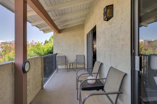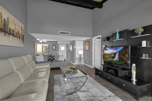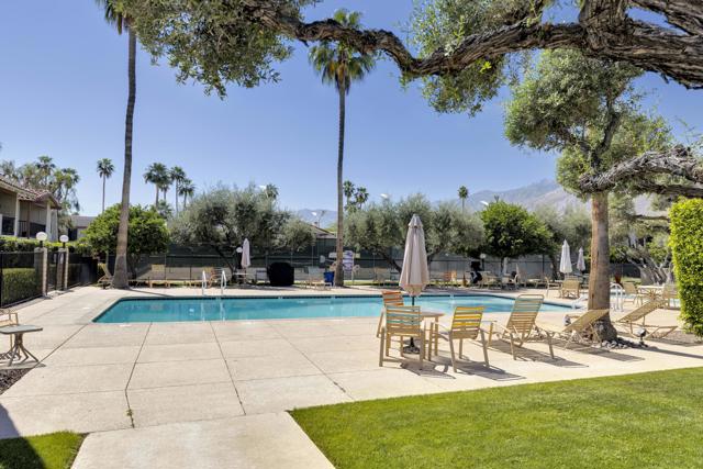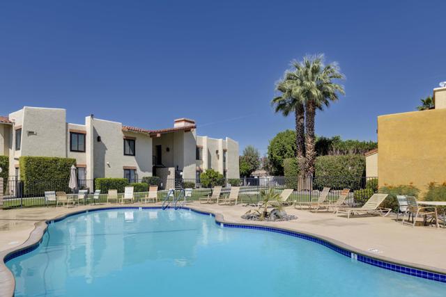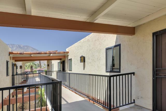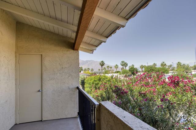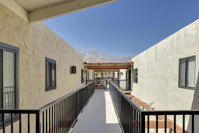 Welcome to Ranch Club Estados, a gated community in central Palm Springs offering comfort, convenience, and resort-style amenities.This upper-level 2-bedroom, 2-bath condo is 1,170 sq ft and features high ceilings that create an open feel throughout. The remodeled kitchen flows into the dining area, complete with a stylish bar and wine fridge, perfect for entertaining. Sliding glass doors lead from the living area to your balcony with beautiful mountain views, ideal for relaxing and enjoying the desert setting.The thoughtfully designed floor plan offers excellent bedroom separation, with ensuite bedrooms positioned on either side of the living space, each featuring its own walk-in closet.The community offers pools and tennis courts, all within a prime central location close to shopping, dining, and local attractions. You own the land (no land lease), adding long-term value and peace of mind.Whether you're looking for a vacation getaway, full-time residence, or income-producing rental, this property does not disappoint!