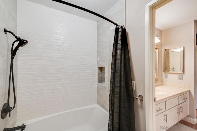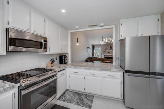 Turnkey and move-in ready, this beautifully updated 2-bedroom, 2-bathroom condo in the coveted Pala Mesa Villas golf community is the one you've been waiting for. From the moment you walk in, the thoughtful upgrades speak for themselves - a stunning remodeled kitchen featuring leathered marble countertops, custom tile accents, and modern finishes that set this unit apart from the rest of the complex. A newly opened pass-through window between the kitchen and dining room adds a bright, connected feel that makes entertaining effortless. Relax in the open living and dining area with soaring vaulted ceilings, a cozy fireplace, and direct access to your private deck where peaceful golf course views await. The spacious primary suite offers a serene retreat with plantation shutters, custom built-in closet organizers, and a beautifully appointed en-suite bath. The second bedroom is equally versatile, with its own stylish bath featuring a vessel sink and charming barn door entry. The unit also includes a 1.5-car garage - perfect for one full-sized vehicle plus a golf cart or extra storage - a rare and practical bonus in this community. Enjoy resort-style living with access to community pools and spa, all just minutes from the Pala Mesa Golf Resort, I-15, Hwy 76, wine country, and the stunning San Diego coastline. This is Fallbrook living - peaceful, scenic, and perfectly positioned. Don't miss it. Turnkey and move-in ready, this beautifully updated 2-bedroom, 2-bathroom condo in the coveted Pala Mesa Villas golf community is the one you've been waiting for. From the moment you walk in, the thoughtful upgrades speak for themselves - a stunning remodeled kitchen featuring leathered marble countertops, custom tile accents, and modern finishes that set this unit apart from the rest of the complex. A newly opened pass-through window between the kitchen and dining room adds a bright, connected feel that makes entertaining effortless. Relax in the open living and dining area with soaring vaulted ceilings, a cozy fireplace, and direct access to your private deck where peaceful golf course views await. The spacious primary suite offers a serene retreat with plantation shutters, custom built-in closet organizers, and a beautifully appointed en-suite bath. The second bedroom is equally versatile, with its own stylish bath featuring a vessel sink and charming barn door entry. The unit also includes a 1.5-car garage - perfect for one full-sized vehicle plus a golf cart or extra storage - a rare and practical bonus in this community. Enjoy resort-style living with access to community pools and spa, all just minutes from the Pala Mesa Golf Resort, I-15, Hwy 76, wine country, and the stunning San Diego coastline. This is Fallbrook living - peaceful, scenic, and perfectly positioned. Don't miss it.