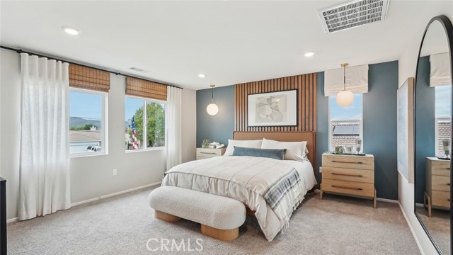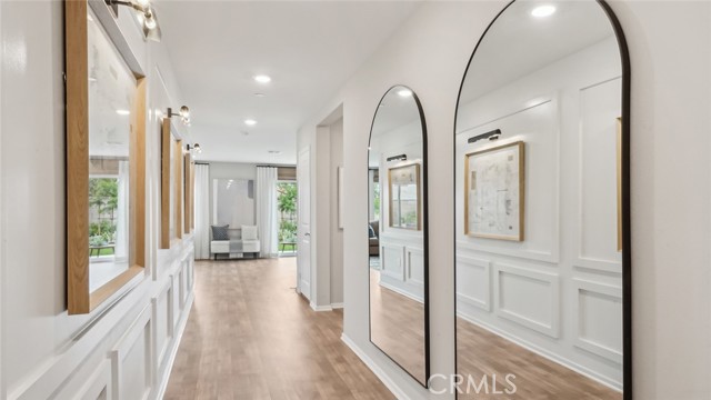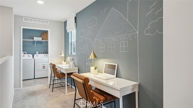 MODEL HOME - This Plan 2,480 square foot MultiGEN suite home on a corner lot has a California Traditional facade and a separate entry on the front side of the home to the suite with a lounging area, kitchenette with sink, microwave, and mini-refrigerator, stackable washer and dryer closet, bedroom and a full bathroom. The main home has a downstairs powder bathroom, open concept great room with dining area and a kitchen island with granite counters, stainless-steel appliances, walk-in pantry, and white shaker-style cabinetry throughout. Upstairs is a Tech area, laundry room with linen closet, the primary bedroom with ensuite and walk-in closet, two additional bedrooms, and full bathroom. The home comes with Smart Home technology, is all-electric, and includes an attached 2-car garage pre-plumbed for an electric car. The front yard is landscaped and irrigated. We anticipate this home will be ready for move in June 2026.