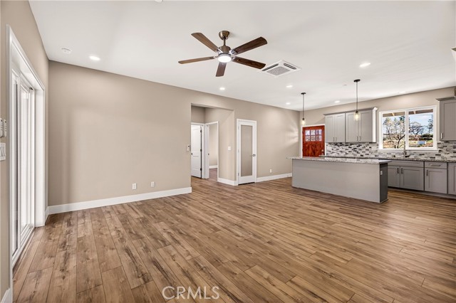 Fantastic Central Paradise location for this 2025 Custom Home, built by Frost Construction a long time Paradise builder. Current Insurance Quote $1,044.70 NO FAIR PLAN! The home offers Owned Solar 3.08 KW system, 7 panels with microinverters. Enjoy the proximity to the Paradise train park where on Wednesdays in the summer there is live music and activities. The .32 Acre lot offers space for Boat, Trailer or R.V. parking with electricity. Landscaped front yard on drip system. Boasting a generous 1,021 square feet of living space, this home features top-notch craftsmanship and modern amenities. Upon entering, you'll be greeted by a charming 96 square foot covered front porch with a craftsman-style front door and custom shutters. Step inside to discover an open floor plan that seamlessly connects the living room, kitchen, and dining area. The kitchen is a chef's dream with granite countertops, stainless steel appliances, recessed LED and pendant lighting, and a stylish island for added convenience. The primary bedroom is a serene retreat with crown molding, a slider leading to the covered patio, and a well-appointed en-suite bathroom featuring granite counters and a step-in shower. The guest bedroom also offers crown molding and access to a sleek guest bathroom with granite countertops and a tub/shower combination. The home features gorgeous Vinyl Plank flooring throughout. Outside, you'll find a spacious 114 square foot covered patio with recessed lighting and a ceiling fan, perfect for outdoor entertaining. Additionally, the oversized two-car garage, measuring 23'5" wide by 25'10" deep, includes a laundry area. Plenty of space for a boat, trailer, or RV parking. R.V. electric hook-ups. Don't miss out on the opportunity to call this beautiful home yours!