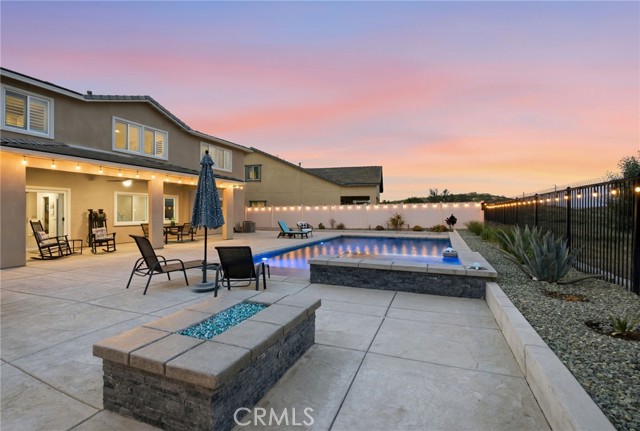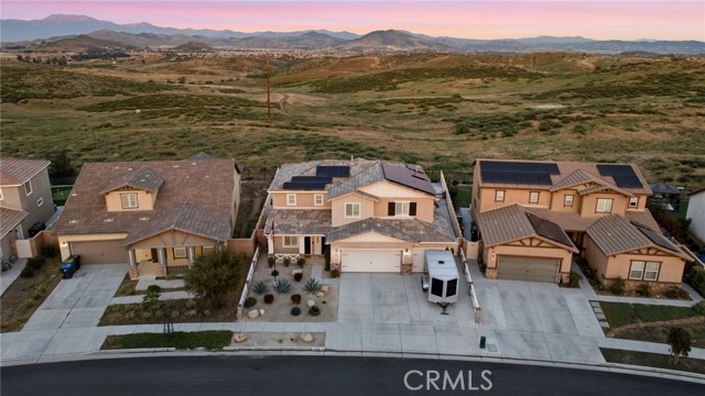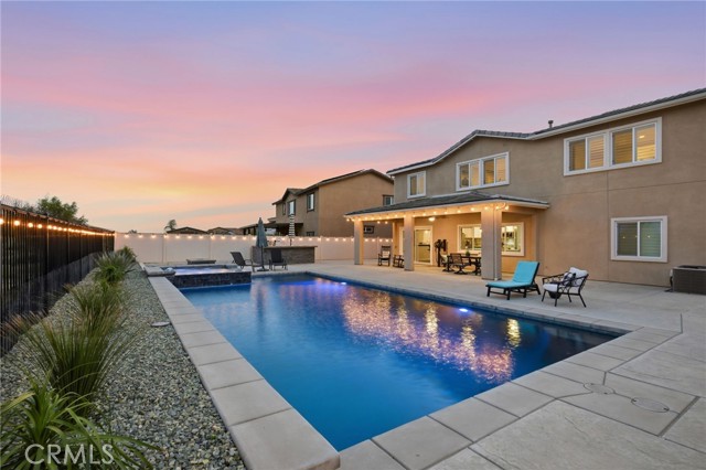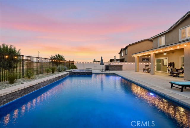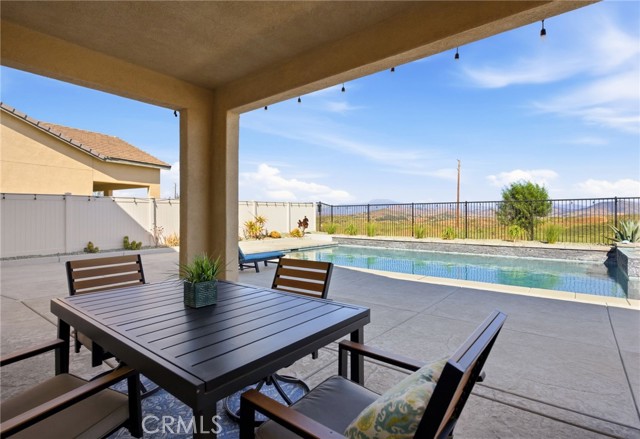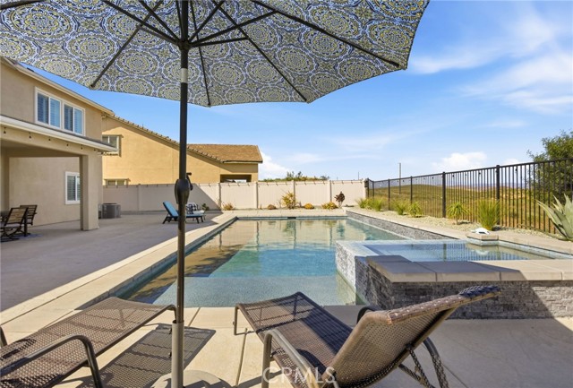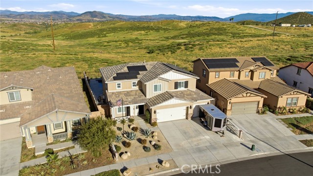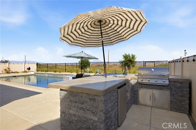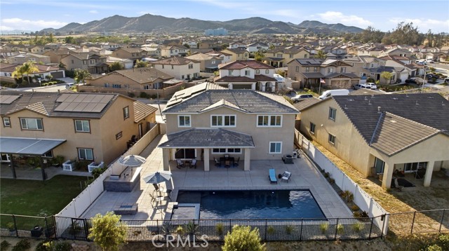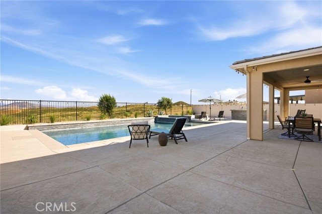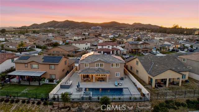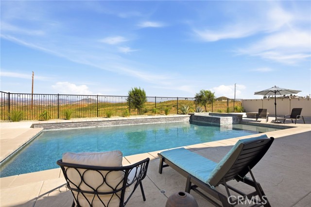 Welcome to your private retreat—where luxury, comfort, and functionality come together in one exceptional home. Perfectly situated on a premium lot backing to a scenic nature preserve, this property offers rare privacy and breathtaking, unobstructed views with no rear neighbors and no HOA. Step into your own resort-style backyard featuring a custom-built saltwater pool and spa, complete with Pebble Tec finish, heated system, Baja shelf, 8.5-foot depth, and an impressive 33,000-gallon capacity. Enjoy multiple water features including a spillover jacuzzi and tranquil waterfalls, all powered by Pentair smart equipment with full mobile control. Designed for entertaining, the outdoor space boasts stamped concrete, drought tolerant landscaping, a covered patio with integrated lighting and fans, a gas fire pit, and a stunning stone BBQ island equipped with a refrigerator, sink, and premium Bull gas grill. Inside, the home is equally impressive with 9-foot ceilings, durable and stylish wood-look plank tile flooring, plantation shutters, and a spacious loft—perfect for a second living area, office, or playroom. A standout feature is the oversized L-shaped walk-in closet—offering the kind of space rarely found, perfect for a full wardrobe, seasonal storage, or a custom dressing retreat. If you’re looking for upgrades…this is the one. Every inch of this home reflects quality, with countless upgrades beyond what can be listed here. The home has been meticulously maintained and is truly move-in ready. Additional highlights include: • Fully owned solar (25 panels) currently no electric bills • Income-producing JADU generating $1,650/month • 3-car garage • Expanded driveway with RV parking This home isn't just gorgeous, it's practical too! Ideally located with easy access to the 215 freeway, this home offers both convenience and connectivity. Enjoy being just minutes from everyday essentials and major retailers including a brand-new Costco Wholesale, The Home Depot, Target, Ross, food take out, and ALDI. Nearby hospitals and medical facilities add an extra layer of convenience and peace of mind. This is more than just a home—it’s a lifestyle. Opportunities like this, with privacy, income potential, upgrades, convenience and resort-quality amenities, are rare. This one has it all- come experience everything it has to offer.