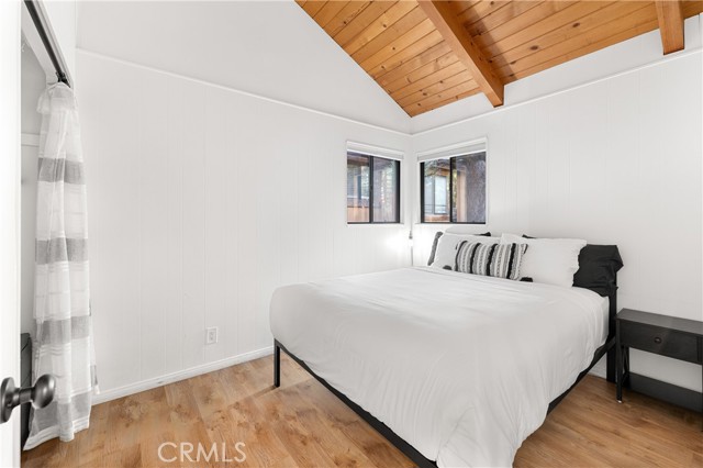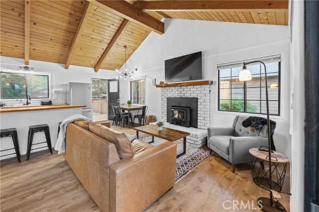 Cozy Mountain Cabin: Your Turnkey Retreat Awaits! Escape to your perfect mountain getaway in this charming, recently remodeled cabin, ideally situated less than a mile from Snow Summit! Every detail has been meticulously updated, offering a truly turnkey experience for relaxation and adventure. Step inside and be greeted by vaulted ceilings that enhance the spacious feel of this 660 sq ft gem. The all-new flooring creates a seamless flow throughout the inviting living space. The brand-new kitchen is a delight, boasting new appliances that are ready for your culinary creations. This cozy cabin features two comfortable bedrooms and a pristine, updated bathroom. Enjoy peace of mind with a newer heater and water heater, ensuring comfort in all seasons. The exterior is just as impressive as the interior, with fresh paint that enhances its curb appeal. An outdoor deck provides the perfect spot for morning coffee or evening stargazing, surrounded by the tranquility of nature. The convenience of a newly paved driveway and walkway adds to the ease of mountain living. Nestled on a double-sized 5,000 sq ft lot, you'll have ample space for outdoor enjoyment. With its prime location and extensive upgrades, this cabin is an exceptional opportunity to own your slice of mountain paradise. Don't miss out!