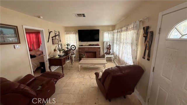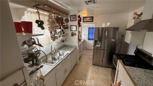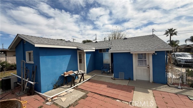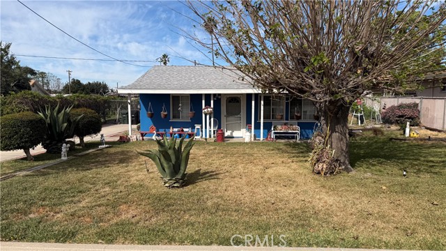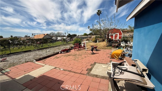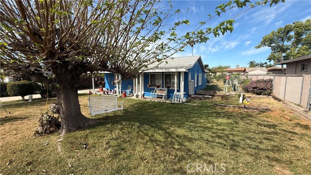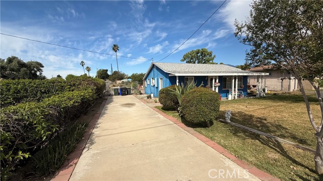 Full of personality and brimming with potential, this storybook blue cottage is a rare find in the heart of Fontana's established Laurel Avenue corridor. Set on a generous 10,000 square foot lot, this 942 sq ft home offers the kind of outdoor space that's nearly impossible to find at this price point, with room to expand, entertain, or invest. The covered front porch welcomes you with classic charm, complete with hanging planters and porch swings that give the property undeniable curb appeal. Inside, the bright living room features tile flooring, a cozy brick fireplace, and large windows dressed in flowing curtains that fill the space with natural light. The galley-style kitchen is well-appointed with granite countertops, white cabinetry, a stainless steel French door refrigerator, and a gas range perfect for any home cook. The home is currently configured as one bedroom with a flex room that offers strong potential to serve as a second bedroom, office, or hobby space. The updated bathroom features wood-look flooring, a walk-in shower, and a cabinet vanity. Step outside and the true value of this property reveals itself, with a large brick paver patio, a detached red barn-style storage shed, mature trees, rose bushes, and a fully enclosed yard with ample parking along the long driveway. The property also includes central A/C and plenty of room to explore ADU potential on the expansive lot. Whether you're a first-time buyer, an investor, or simply someone who wants space to breathe, this charming Fontana cottage delivers character, comfort, and opportunity all in one.