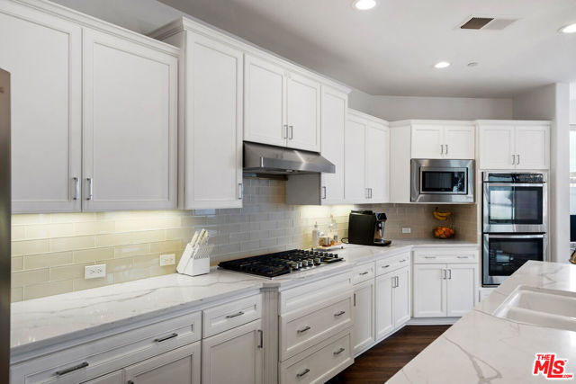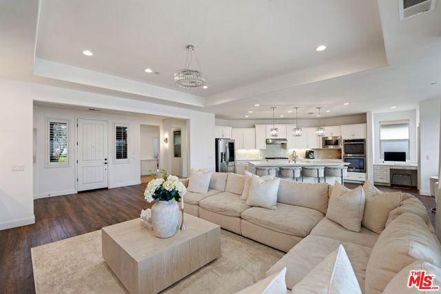 Behind two private gates in the ultra-exclusive Highgate Shires of Seven Oaks this fully renovated single-story Devonshire floorplan blends luxury privacy and sophisticated design. This semi-custom home features an open-concept layout ideal for entertaining and everyday living. The chef's kitchen showcases stainless steel appliances dual ovens a walk-in pantry designer lighting and a large island that flows into the spacious living area with custom built-ins and a beautifully remodeled fireplace. The split-wing layout offers four bedrooms with privacy on each side of the home plus a versatile den with custom glass French doors and a built-in Murphy bed perfect as an office or optional fifth bedroom. Bathrooms have been tastefully remodeled with frameless glass showers and designer finishes. The primary suite offers a spa-like bath with soaking tub dual vanities and a large walk-in closet. Enjoy a private backyard with extended concrete covered patio with lighting and fans and no rear neighbors. Additional highlights include prepaid solar a 3-car garage and Highgate's resort-style amenities including clubhouse pools gym pickleball parks and award-winning Highgate Elementary.