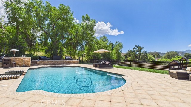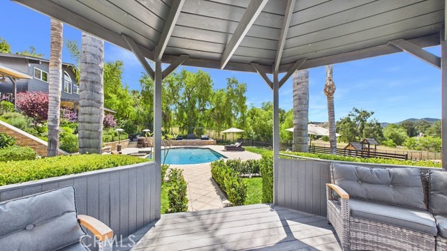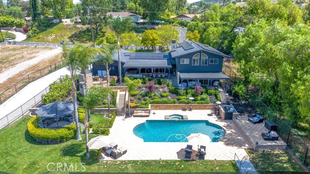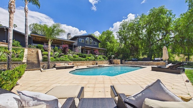 Exceptional Equestrian Estate! This Home is well located within the heart of Thousand Oaks and has a rare and well sought after 1.3 acres of all usable land. This ranch style architecturally inspired and designed home provides outstanding curb appeal and is located on a quiet tree lined street while offering true privacy for not having any neighbors on either side of this home. This property is also oriented on a bluff overlooking the community, hills and mountains while observing the scenic sunsets beyond the neighborhood vistas from this special and unique location. This property has direct access to the local community horse riding trails while offering several stalls, space for an arena, turnouts and room to spare for additional tack rooms or storage buildings. This lot also has space for an ADU building or workshop type of garage without obstructing the views from the main house. This home has several upgrades and updates with a newer roof, newer solar system including 4 Tesla back up batteries and well manicured landscaping with hardscape improvements throughout the property. There are different outdoor patios and deck spaces along the back of the home with a resort like oversized salt water pool and garden area plus a large gazebo with a generously sized custom built-in BBQ area for all your entertainment and family gathering needs. This property has an open and user friendly layout with larger rooms throughout the home with two fireplaces, privacy for the bedrooms above and a separate family living space down stairs with additional bonus rooms from the main home and a large indoor laundry room. The kitchen has all Viking stainless steel appliances, granite countertops with plenty of cupboard and countertop space to store all of your kitchenware and small appliances plus a larger walk in pantry. There is a three car garage with additional storage space inside the garage and space for larger vehicles to park. This home has so many favorable and hard to find amenities considering the location, the overall condition with the lot size, all of the improvements plus the views make this a special homeownership opportunity. Make sure to schedule your viewing of this incredible equestrian estate before it is too late!