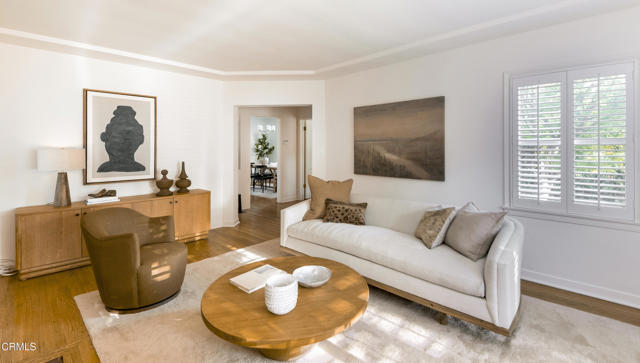 This classic and timeless 4 bedroom, 2 bath single-story home is nestled on a quiet tree-lined street in the sought-after Linda Vista neighborhood of Pasadena. The home combines classic traditional appeal with modern upgrades and is minutes away from the vibrant community of Pasadena. Cited on a verdant private lot with abundant natural light, the home features rich hardwood floors and a warm and welcoming ambience that is simultaneously relaxed and elegant. Newly painted throughout, with a spacious living room that surrounds a cozy fireplace perfect for gatherings of loved ones. Adjacent is the formal dining room, ideal for lovely dinners, as well as peaceful mornings. The large remodeled kitchen is both stylish and functional with abundant storage, stainless steel appliances, and stone countertops. The home features recessed lighting, dual paned windows, plantation shutters, central heating and air conditioning, and a detached 2-car garage. The well-tended tranquil garden is lovely for outdoor entertaining. Serene and private, yet minutes from all that Pasadena has to offer. The Linda Vista Library and Linda Vista Park are less than a block away, close to freeways, the Rose Bowl, Brookside and Annandale Golf Courses, Kidspace Museum, hiking and biking trails, the Norton Simon Museum, Caltech, JPL, Huntington Gardens and Library, prime shopping, dining, and more. This Linda Vista gem blends charm, tranquility, convenience, and modern living.