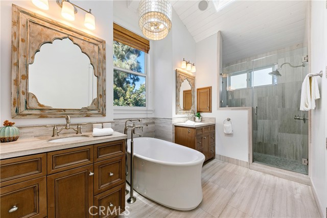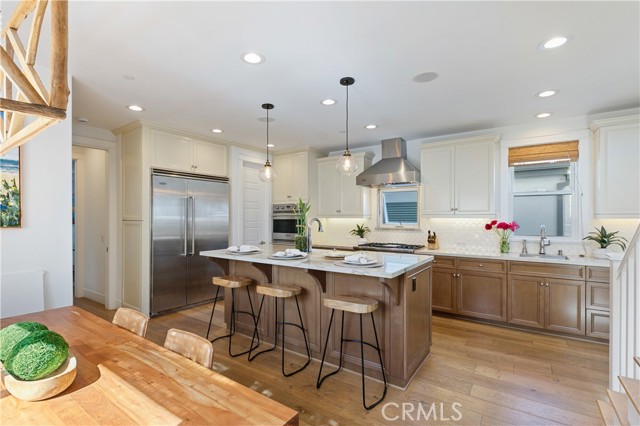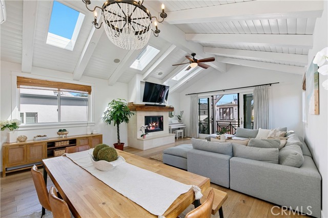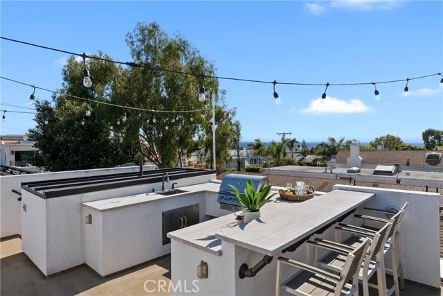 Discover this stunning Hermosa Beach single family residence, perfectly situated in a prime location with thoughtful upgrades you have to see to appreciate! The home is ideally located less than a 10 minute walk to the beach and has unbeatable proximity to the wood chip trail (the ‘greenbelt’) and Bi-Centennial Park, which you can access directly from the backyard. The humongous private roof top deck offers peek-a-boo ocean views and an outdoor kitchen with built-in-grill and firepit. The backyard patio has a spa, creating the perfect set up for entertaining or ultimate relaxation. Inside, you’ll find a blend of style and comfort in this meticulously renovated home. A few highlights include an open layout, a chef’s kitchen with center island and high end appliances, wood beamed ceilings, abundant natural light, built-in surround sound, A/C and a washer/dryer set BOTH upstairs and downstairs. In addition to the kitchen, the reverse floor plan offers a primary ensuite, half bath, dining area and inviting living room with skylights, a cozy fireplace and a balcony to enjoy. The spacious primary ensuite is complete with separate vanities, a soaking tub, walk-in shower with dual shower heads and skylights. The main level has 3 additional bedrooms and 2 full bathrooms, making the total bedroom/bathroom count 4 and 4. Don’t miss the rare opportunity to own a beautifully renovated beach home in this highly coveted, West of PCH pocket in Hermosa!