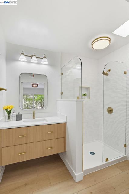 Location is everything! 40930 Rioja Ct. is tucked inside a quiet cul-de-sac in the heart of Fremont's Mission San Jose neighborhood. It offers you outstanding Mission Schools and a short walk to Central Park and Lake Elizabeth. It's close to BART, 880, 680 & 84. This light-filled home is wrapped around by roses and fruit trees. Both bathrooms were beautifully renovated in March with a modern style. The spacious primary ensuite includes a new bathroom enclosed by barn-house door. Custom design includes: floating vanities, mirrors with fog-defrost light, new shower, custom-glass-enclosure, satin-gold faucets/shower/towel accessories and matching light fixtures. The contemporary flare extends beyond the bathrooms. There are 13 New lights, 7 new doors, all new matt-black finish knobs and hinges. The kitchen has new faucets, hood, and cabinet door handles. The home owner's love for gardening shows throughout this adorable home. You will be greeted by blooming roses as you approach the house and feel instantaneously relaxed in the sunny backyard lined with fruit-bearing trees, including Apple, Orange, Tangerine, Yellow Peach, White Peach, Pomegranate, Lemon and Plums. The spacious 2-car garage has EV-charging.