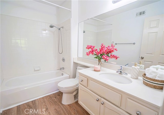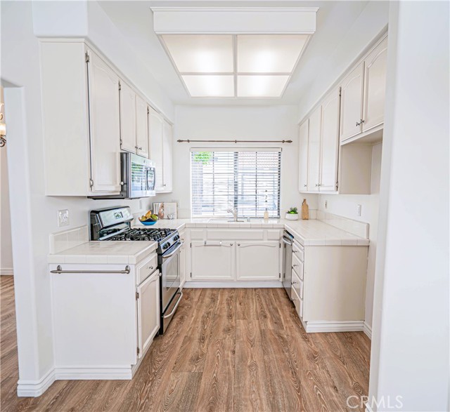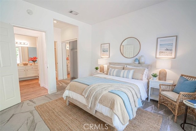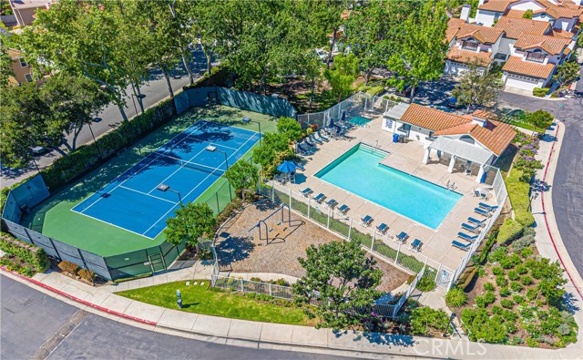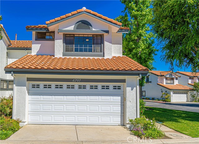 Beautiful Capri 3+3 home in a highly sought-after location with a bright, spacious, and open floorplan. The large living room features a fireplace and vaulted ceilings, complemented by a formal dining area and roomy eat-in kitchen. Recently refreshed with new interior paint, stunning wood-like flooring downstairs, and custom window treatments throughout, this move-in ready home offers three ensuite bedrooms. Downstairs includes a large bedroom with a full bath and access to large patio through sliding doors. The upstairs boasts a primary suite with vaulted ceilings, a walk-in closet with custom CA Closets, ensuite bath with dual vanity, and soaker tub with shower, plus another bedroom with its own ensuite bath. Enjoy direct access to the 2-car garage with electrical car charging plug, ample built-in storage and a workbench. Home offers a private indoor laundry room with washer and dryer hookups and an HVAC system. The lush private yard, accessible from the living room and downstairs bedroom, showcases mature trees, succulents, flowers, and plenty of space for barbecues and entertaining—nearly double the size of other yards in the community. This resort-style townhome is just steps from neighborhood pool, spa, tennis courts, playground, and greenbelt. Located in the prestigious Oak Park Unified School District, it’s close to top-rated schools, parks, hiking and biking trails, dining, shopping, and more. This home is truly special.