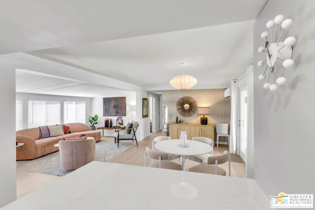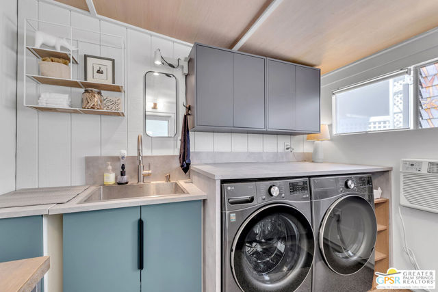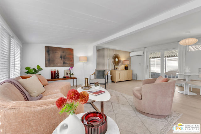 Stunningly Updated Park Home with Artistic Attention to Detail! Welcome to this beautifully transformed 2-bedroom, 2-bath residence in the highly sought-after Sahara Parka 55+community with rent control! Updated plumbing and electrical systems, insulation for energy efficiency, and stylish flooring throughout. Home features a beautifully remodeled kitchen with a standout stove and modern appliances. The separate laundry room adds convenience. Relax or entertain outdoors on the private side and back patios, adding valuable extended living space. This home is ready fori ts new owner don't miss your chance to live in one of the friendliest communities in South Palm Springs.Park approval required.