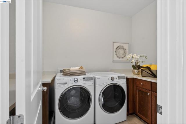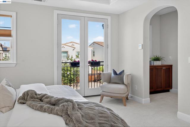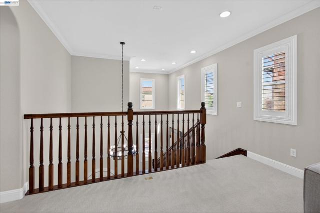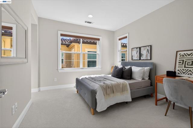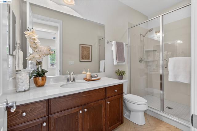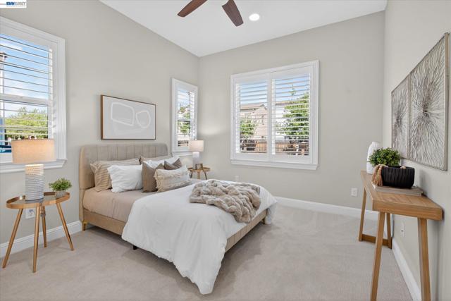 Rare NW-facing Toll Brothers gem in prestigious Mosaic at Gale Ranch — 4 beds, 4 full baths, 2,501 sqft of move-in ready luxury. Nearly $100K in upgrades including custom cabinetry, designer tile flooring, recessed lighting throughout, bespoke island & pantry drawers, recirculating water heater, Hunter Douglas blinds & shutters, epoxy garage floor, dual AC, fresh paint & new upstairs carpet. The open-concept 1st floor features a chef's kitchen with granite countertops, oversized island with bar seating, built-in stainless appliances, and a private downstairs bedroom with full bath — ideal for guests or multi-gen living. Upstairs, all three bedrooms offer private en suite baths and walk-in closets, including two light-filled bedrooms with Juliet balconies. The primary retreat features custom built-ins, a dedicated dressing room, and a spa-like bath with dual sinks, soaking tub & walk-in shower. A versatile loft offers potential for a 5th bedroom. Enclosed stone patio with citrus trees & roses — a private, low-maintenance escape. Residents enjoy the Mosaic Recreation Center, clubhouse, pool, Mosaic, Creekside & Quail Run Parks, and the Iron Horse Regional Trail. Located in SRVUSD near Quail Run Elementary, Gale Ranch Middle & Dougherty Valley High.