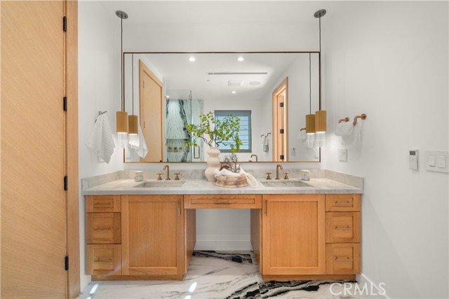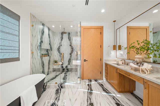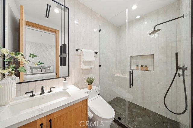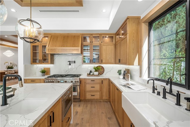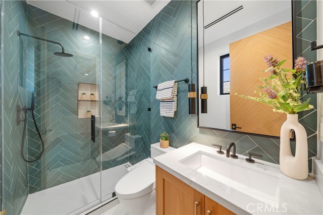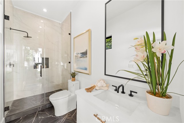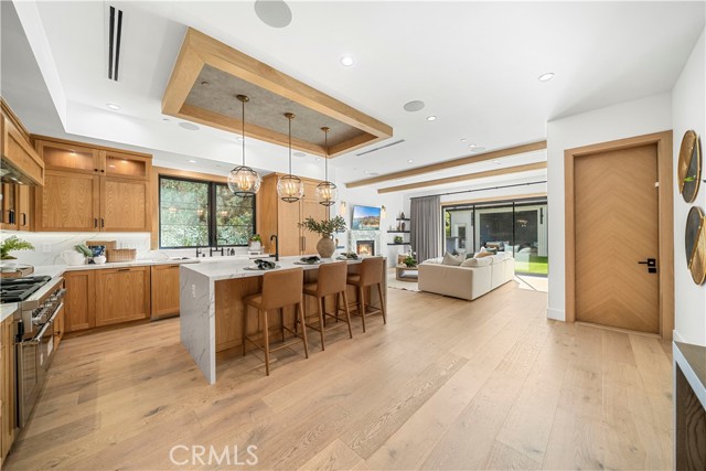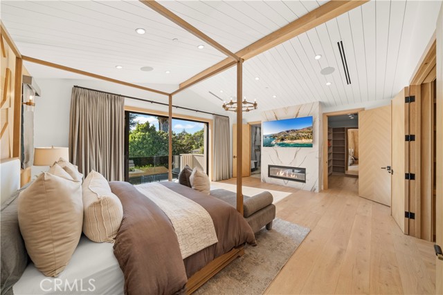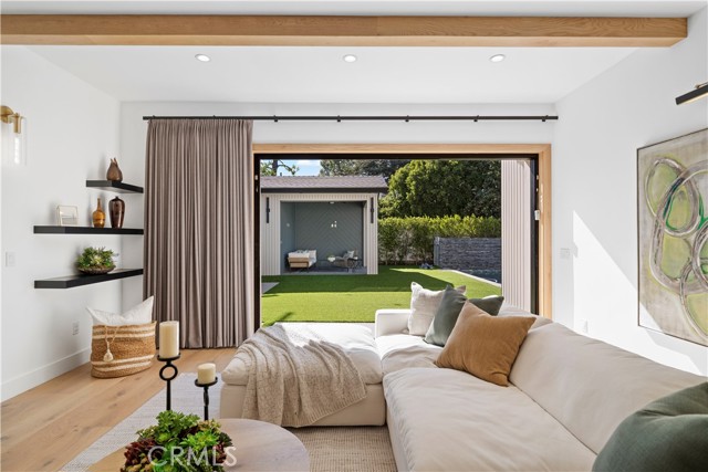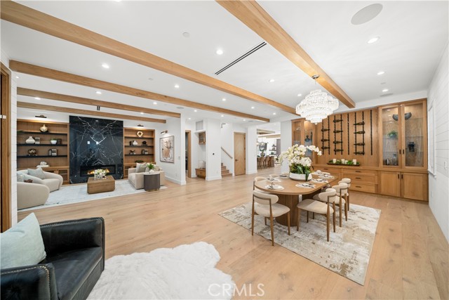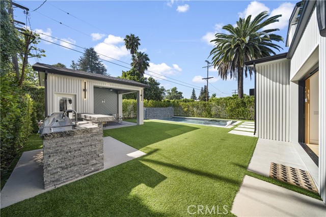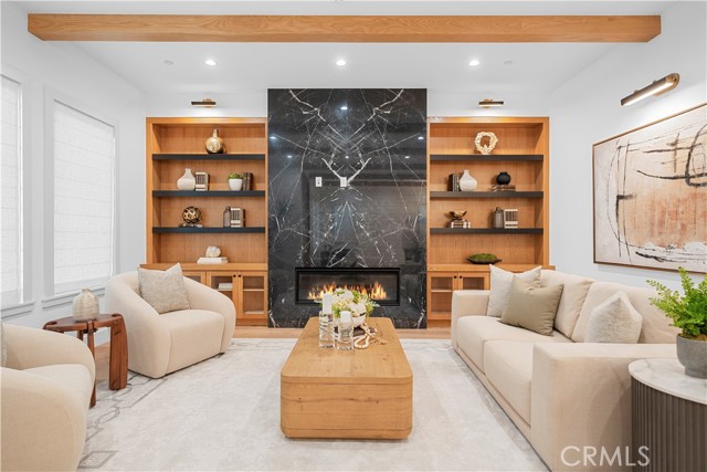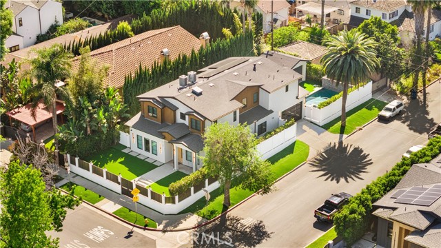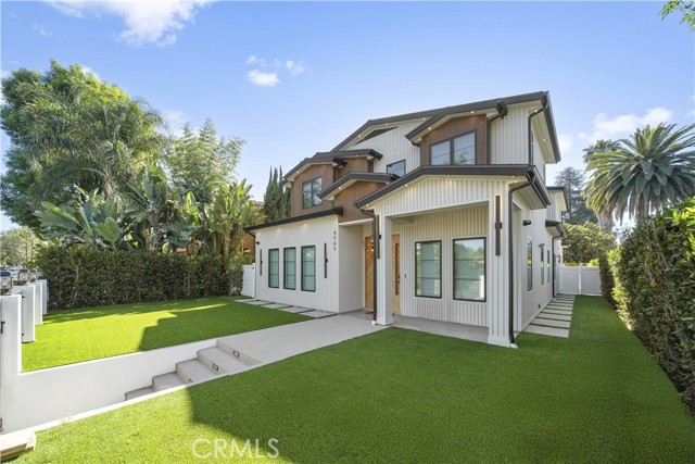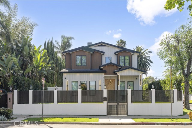Newly built in 2023, this exceptional modern farmhouse is situated on a premium corner lot, offering enhanced privacy and an abundance of natural light. Boasting 5 bedrooms and 6.5 bathrooms, the home is thoughtfully designed with high-end upgrades and refined finishes throughout. The open-concept floor plan features wide-plank oak flooring, custom millwork, and a welcoming living room with a statement fireplace, flowing seamlessly into a spacious dining area. The chef’s kitchen is equipped with top-of-the-line appliances, custom cabinetry, an oversized island, and ample counter space—perfect for everyday living and entertaining. Designed for true indoor-outdoor living, expansive sliding glass doors open to a beautifully designed backyard retreat. Enjoy a private pool house with its own separate bathroom, along with generous space for outdoor dining, lounging, and entertaining. All bedrooms are en-suite, providing comfort and privacy, including a luxurious primary suite with vaulted ceilings, fireplace, walk-in closet, private balcony, and a spa-inspired bath with dual vanities, soaking tub, and oversized shower. Additional highlights include a smart home system, security cameras, and indoor/outdoor audio. This move-in-ready residence offers the perfect blend of modern design, functionality, and upscale living.