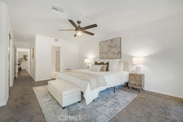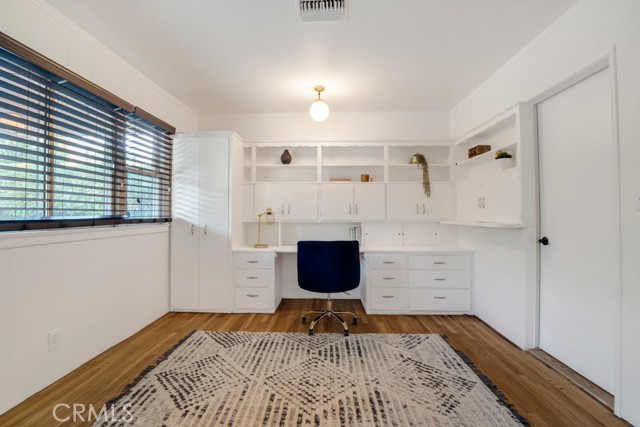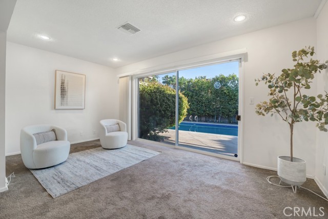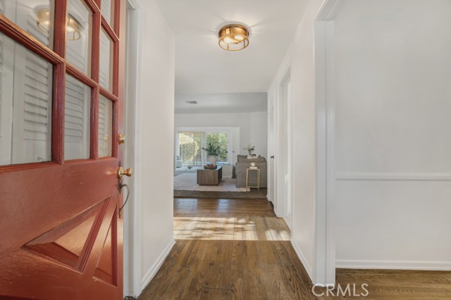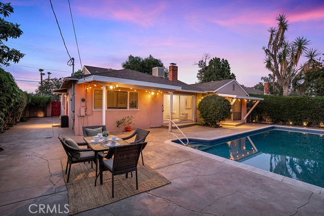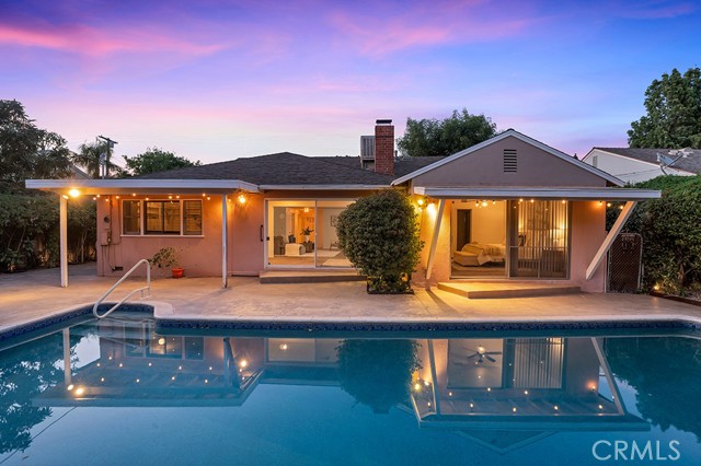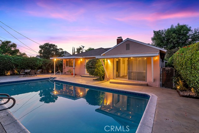 Welcome to 12312 Erwin Street — Valley Glen Living at Its Finest Nestled in the heart of the highly sought-after Valley Glen neighborhood, this stunning 3-bedroom, 3-full-bath ranch-style home makes an unforgettable first impression. A sweeping brick-accented driveway curves gracefully to the front, flanked by vibrant gardens bursting with color, mature trees, and a lush lawn kept green year-round by a built-in sprinkler system. The warm red Dutch door with glass panels is your first hint at the character that waits within. Step inside to a welcoming foyer with rich hardwood floors and a warm gold flush-mount fixture setting an elegant tone. The formal dining room impresses with a statement gold chandelier, gorgeous hardwood floors, and a charming diamond-pane window — designed for special occasions. The charming kitchen features white shaker-style cabinetry, black hardware accents, generous counter space, and a sunny breakfast nook perfect for morning coffee. A dedicated laundry room with utility sink adds everyday practicality. The expansive living room features a classic brick & stone fireplace, track lighting, and a large sliding glass door framing sparkling pool views — a room made for gathering and making memories. The separate den opens directly to the backyard, ideal as a media room, playroom, or casual retreat. The private office boasts stunning custom built-in cabinetry, shelving, and hardwood floors — an inspiring workspace that easily doubles as a 4th bedroom. The primary suite is a true sanctuary with direct sliding glass door access to the pool and backyard. Two additional bedrooms are bright and well-appointed with ceiling fans and ample closet space. Three full bathrooms serve the home with ease. Outside, a sparkling pool, stamped concrete patio, string lights, ground lighting, mature privacy hedging, and a full backyard sprinkler system create a resort-style retreat. A 2-car garage completes this exceptional property. Don't miss this Valley Glen gem — schedule your private tour today!